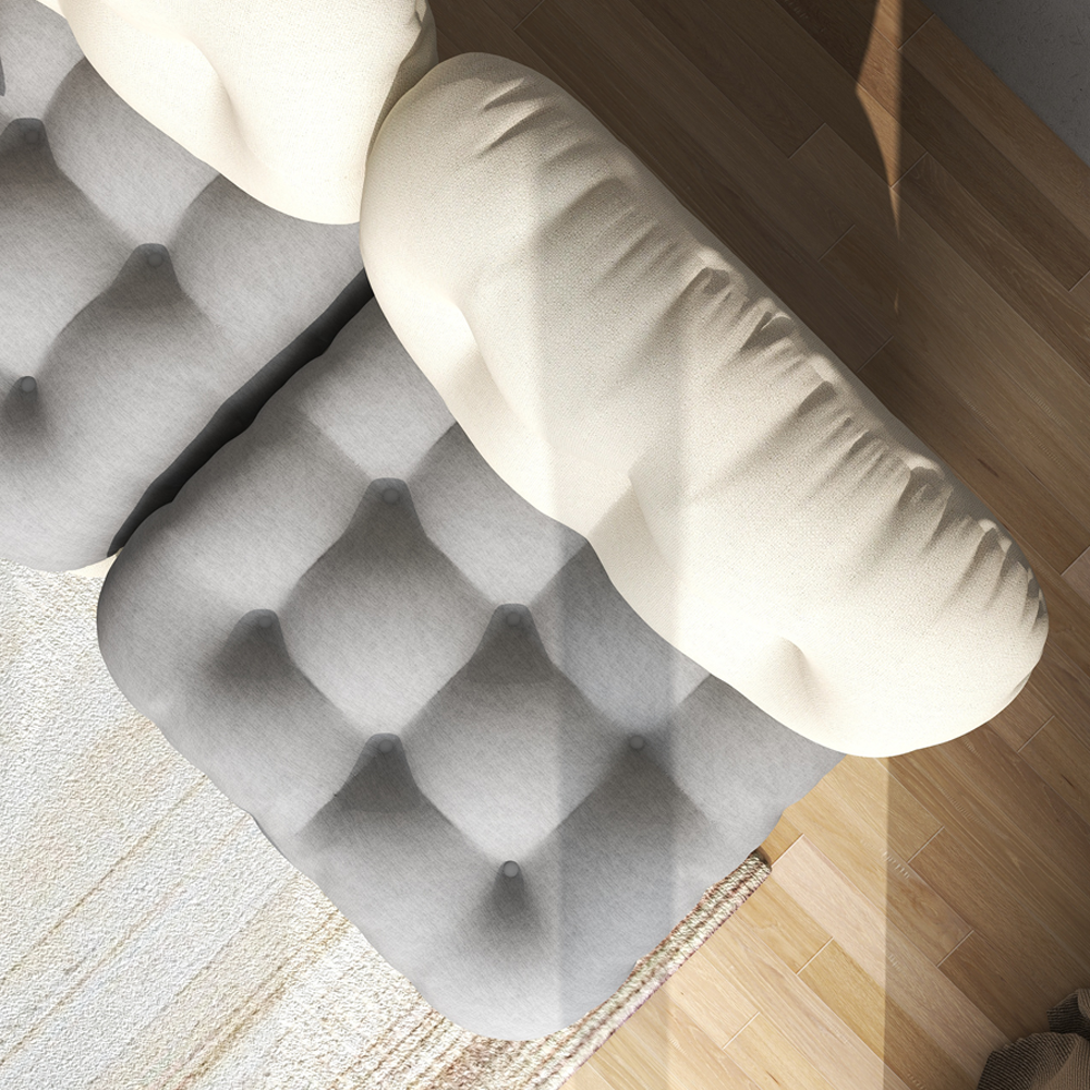 MATERIALS Fixed Seat Cushion, Sectional Sofa, Adjustable Seat Arrangement Water Repellent, 100% Polyester Fabric Tufted Button Seat & Back Cushion Black Colour Bun Feet