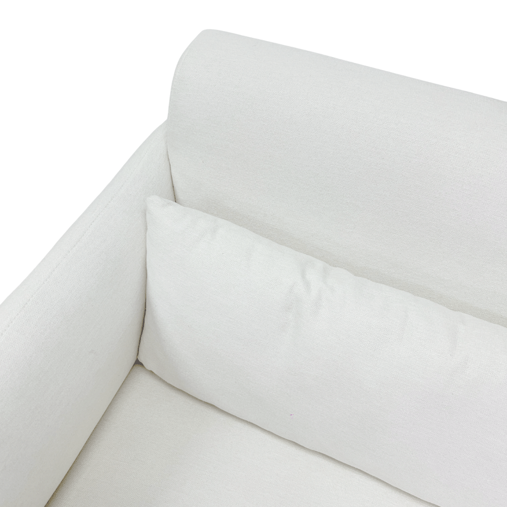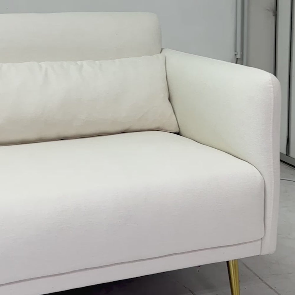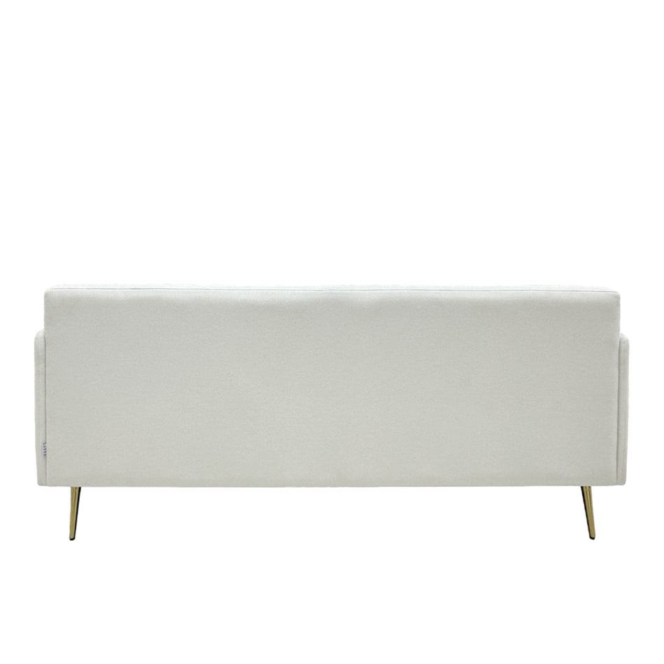 MATERIAL 100% Polyester, Water Repellent Fabric Fixed Back & Seat Cushions Chrome Gold Tapered Legs Kapor Wood Frame with High Quality Webbing High Density & Non-Sag Foam Loose Lumbar Cushions