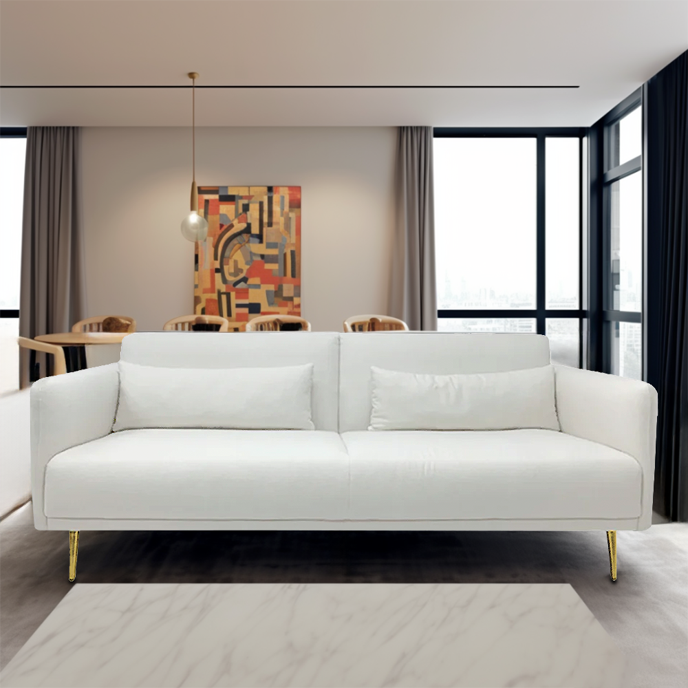 Tyla Sofa is inspired by modern contemporary designs with classy details retained. It's wide and deep seats are perfect for lounging, while its low profile creates a more spacious living environment. The gently curved backrest paired with lumbar cushions provide the right amount of support for your body, while the golden legs give this sofa its iconic sturdy yet luxurious look. Its available in both 2.5 Seater & 3 Seater.