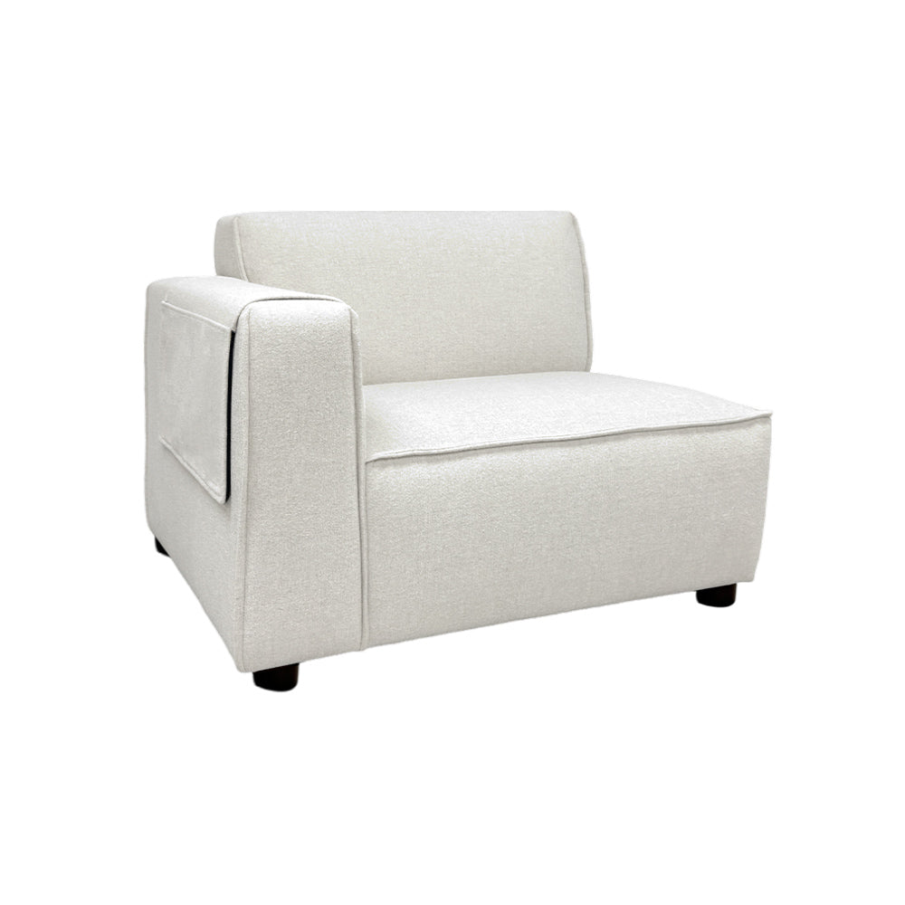 Clean, crisp, and ideal for lounging, the Bruno Left-Arm Modular Chair is designed with an architect's precision, perfectly proportioned for both small and large living spaces. Its minimalist silhouette exudes a fresh, casual vibe, featuring A-profile arms with new piping details. The modular components enable you to rearrange the sofa to suit your evolving needs. Additionally, a small side pocket provides convenient storage for magazines or a remote control.