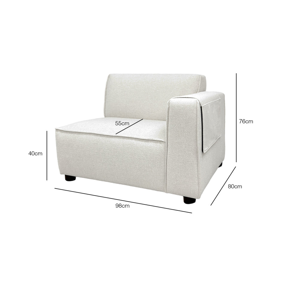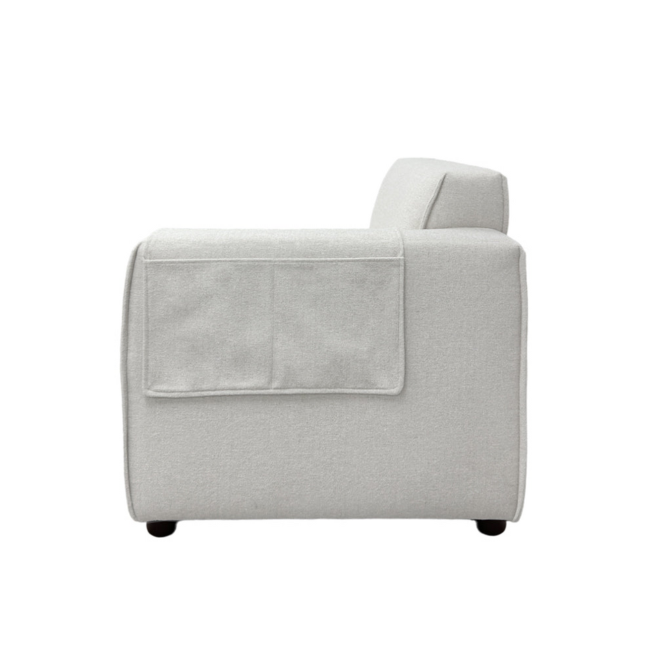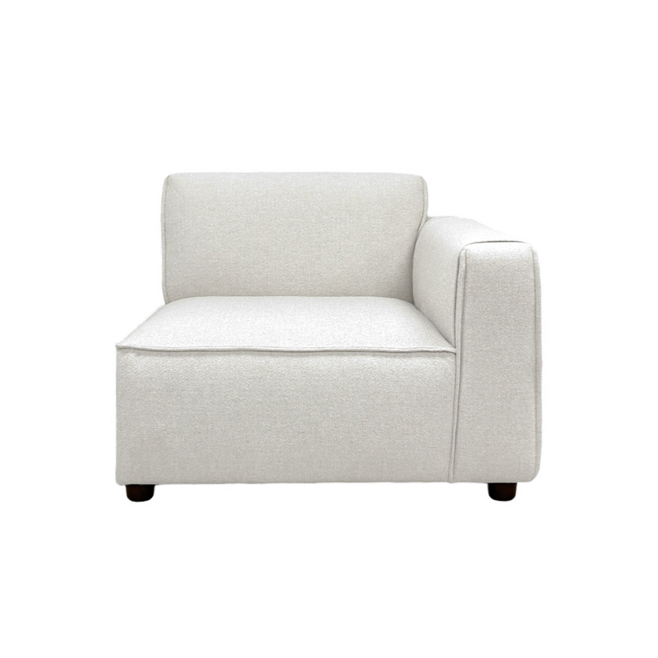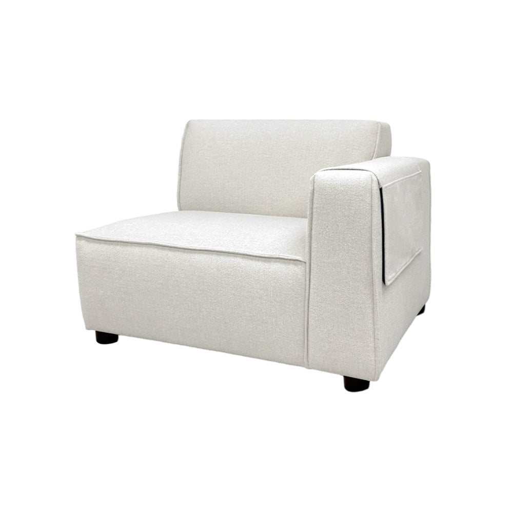 Clean, crisp, and ideal for lounging, the Bruno Left-Arm Modular Chair is designed with an architect's precision, perfectly proportioned for both small and large living spaces. Its minimalist silhouette exudes a fresh, casual vibe, featuring A-profile arms with new piping details. The modular components enable you to rearrange the sofa to suit your evolving needs. Additionally, a small side pocket provides convenient storage for magazines or a remote control.