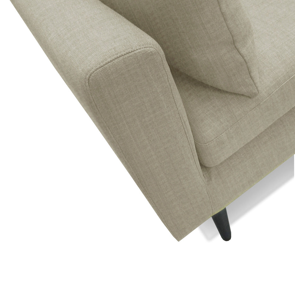 Benz 3 Seater sofa combines a deep comfort with inherently soft seats and additional cushions. With the ideas of Scandinavian design, Benz sofa features inviting shape and minimalist silhouette, invites you to recline in maximum comfort. With Eco-Clean fabric that comes with the latest stain-proof, water & oil repellent technology, this sofa is high functionality with the minimal maintenance.