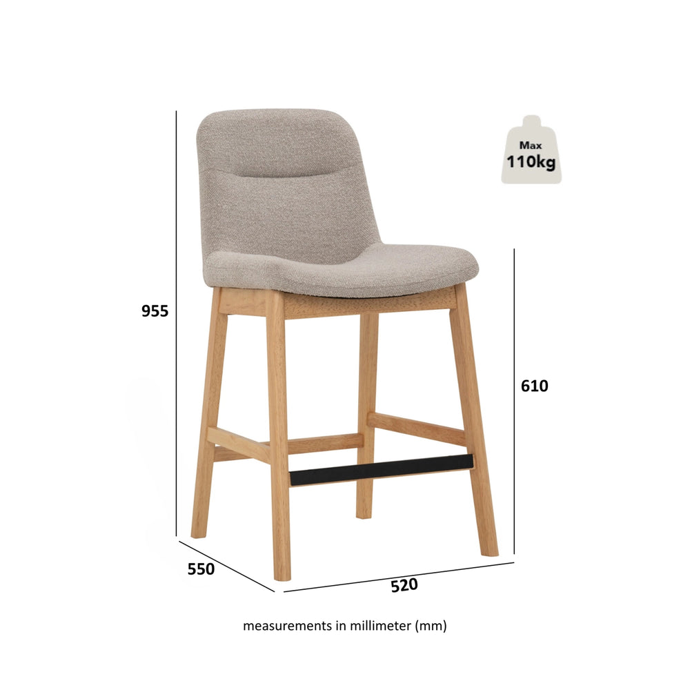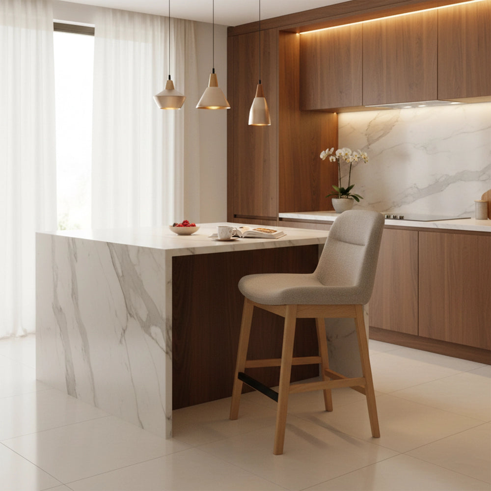 The Benz Counter Stool blends Mid-Century charm with modern function. Crafted from sturdy Malaysian Oak and paired with textured fabric for a warm, versatile look. Ergonomically designed for lasting comfort. Ideal for kitchens, cafés, and stylish commercial spaces.