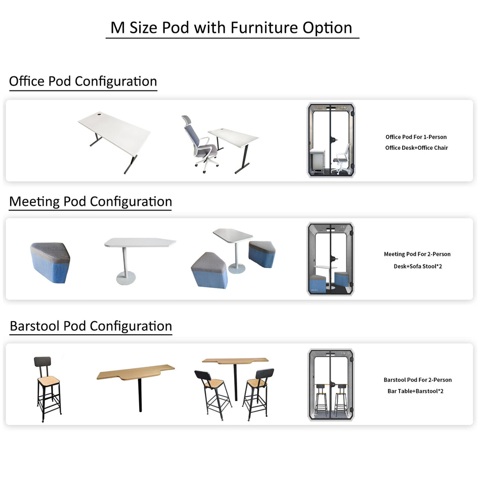 For more details on product features and the available furniture sets for each Pod size, please visit our ‘Customize With Us’ section.