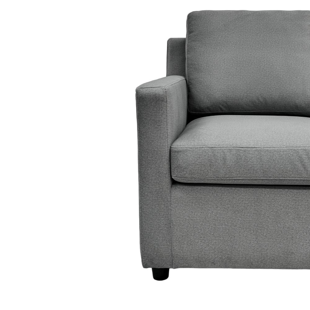 MATERIAL 100% Polyester, Pet Friendly Fabric Quality Foldable Sofa Bed Metal Mechanism Loose Back & Seat Cushions With Quality Inner Liner Kapor Wood Frame with High Quality Webbing High Density & Non-Sag Foam Black Bun Feet