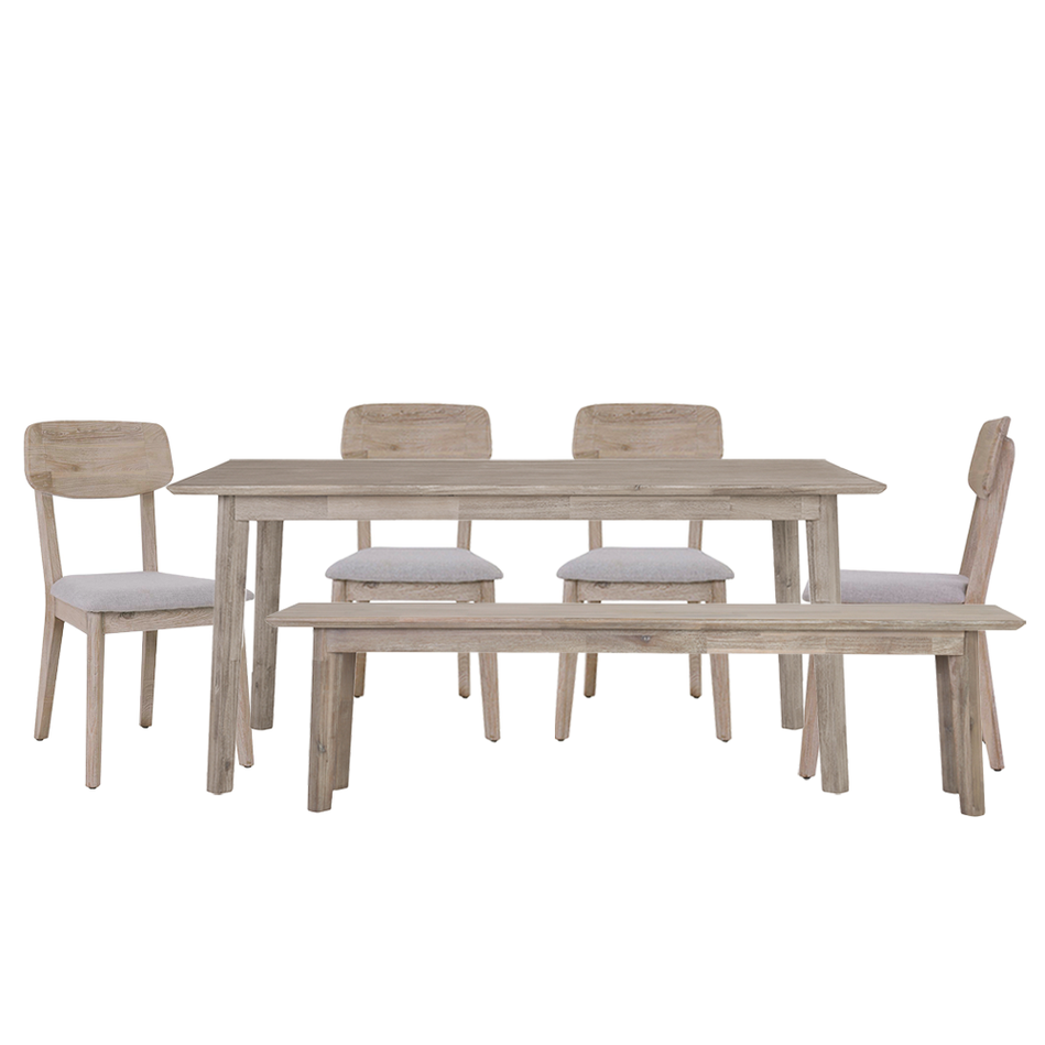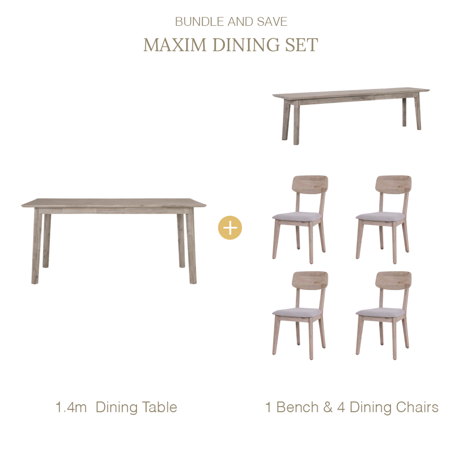 THE SET CONSIST OF - Maxim Dining Table x1 / Maxim Dining Chair x4 / Maxim Wooden Bench