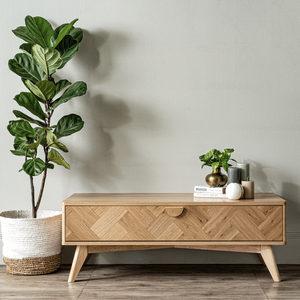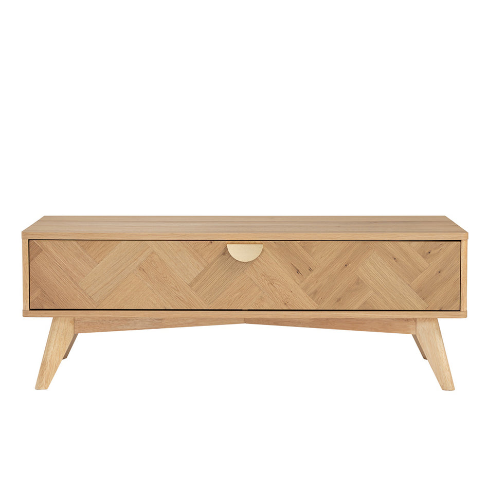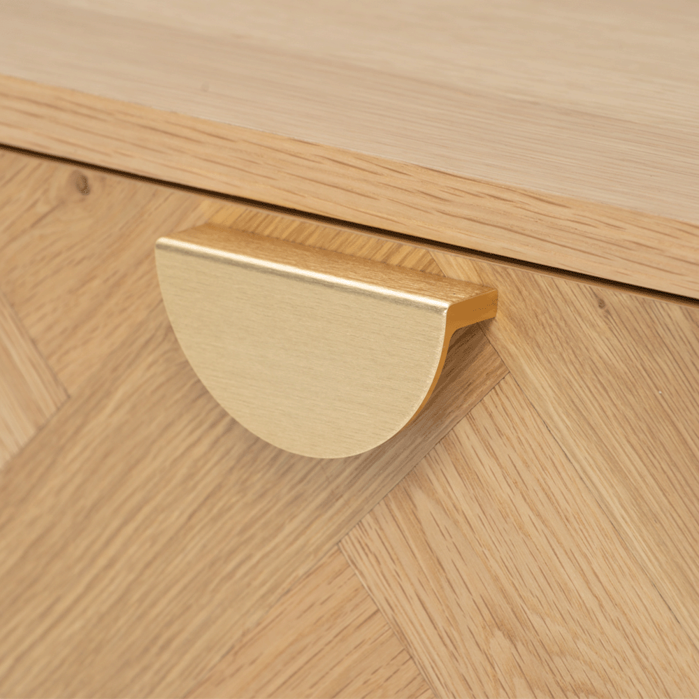 merges hints of art deco and rustic chic with urban tribe styles through the artful use of Oak wood veneered in a classy herringbone pattern – creating a feel of tropical nature within the urban living space. Paired fashionably with gold handle, its modern elements are suitable for individuals who appreciate sophistication and elegance.