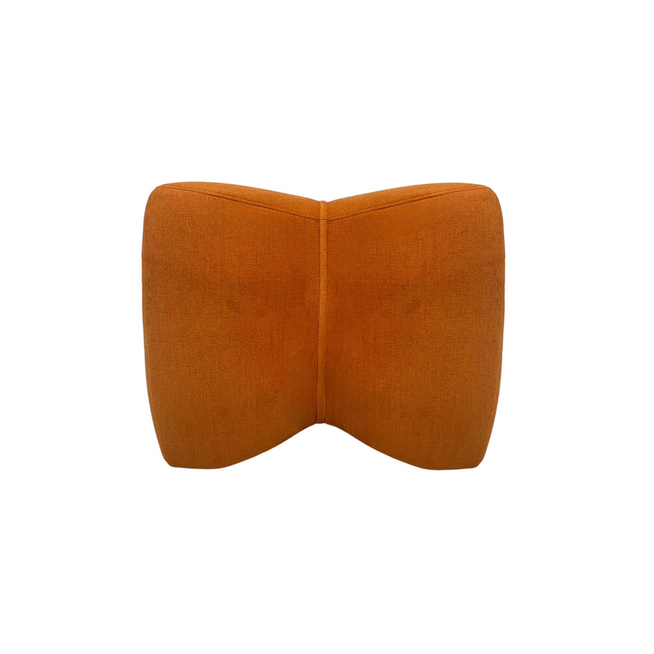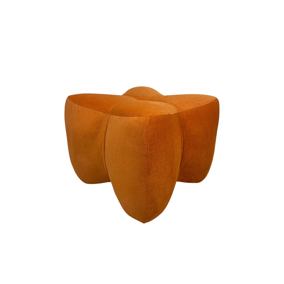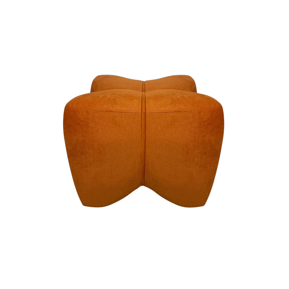 The Clover Ottoman blends sculptural design with plush comfort. This modern accent ottoman in vibrant orange adds a bold pop to any room. Versatile as a seat or decor piece, it brings both function and artistry to your space. Perfect for contemporary interiors.