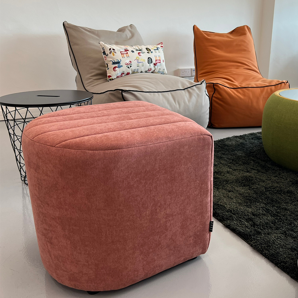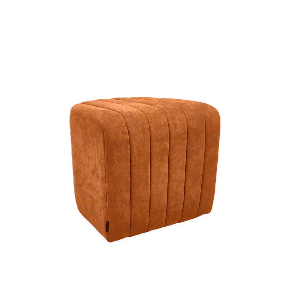 Ease Ottoman is perfect for relaxing with your feet up or pop them in the living room for additional seating. A modern take on a basic curve ottoman. Chic, comfortable and stylish, perfect for any room. It is handcrafted with tufting stripes pattern and upholstered in velvety water repellent fabric, easy for maintaining.