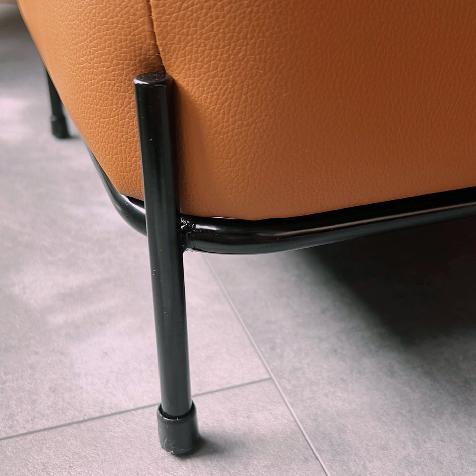 Rounded and plump, the Hemlock Faux Leather Ottoman stands out in a sea of lines and angles. This ottoman’s firm seating cushion is thickly seamed around the top edge, resting in a rounded edge powder-coated metal frame with statement-making legs, compliment with a quality Faux Leather that maintains a fresh look in spite of the daily grind. Hemlock Ottoman is also available in few more color shades.