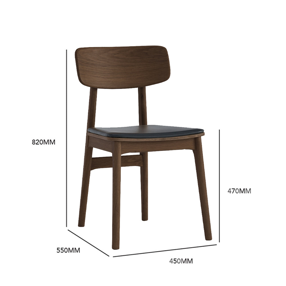 DINING CHAIR Dimensions W 48.5 x D 50 x H 80.5 cm x SH 45.5 cm Materials Faux Leather Cushioned Seat-Black Chair frame in Walnut Oak Veneer Bentwood Back Frame