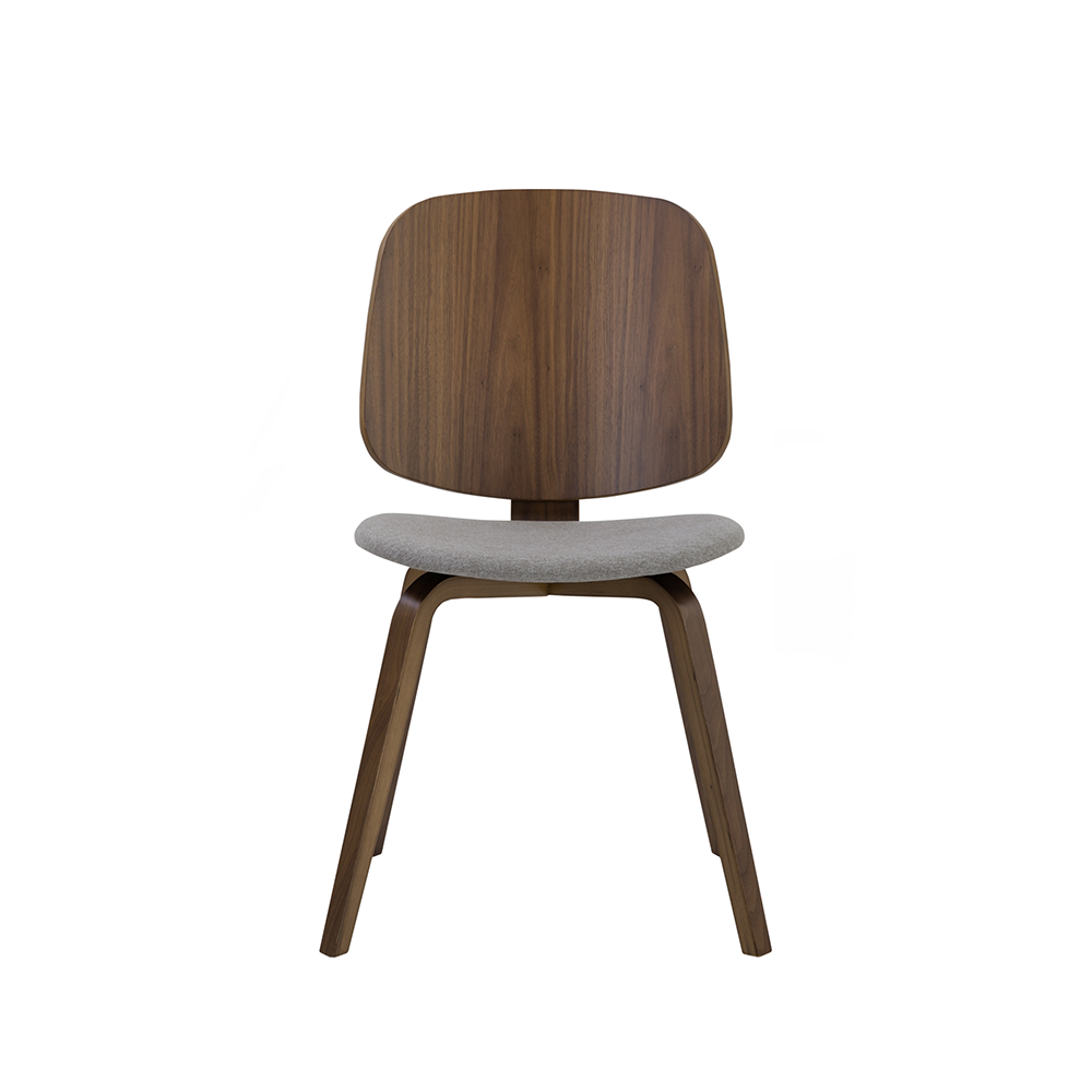 MATERIALS Fabric Cushioned Seat-Beige Solid Woodframe Walnut Veneer Bentwood on Chair Back High Density Foam Chair Seat