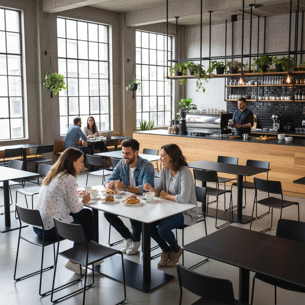 Athena Rectangle Dining Table showcases clean lines and sturdy construction, designed to meet the demands of busy cafe, bistro, pantry table and any dining spaces. Its modern silhouette brings a polished, professional look to any commercial setting without compromising on style.