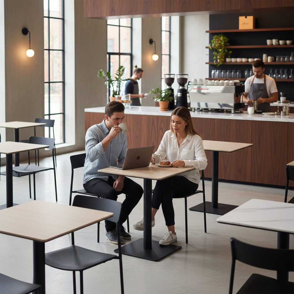 Athena Square Dining Table showcases clean lines and sturdy construction, designed to meet the demands of busy cafe, bistro, pantry table and any dining spaces. Its modern silhouette brings a polished, professional look to any commercial setting without compromising on style.