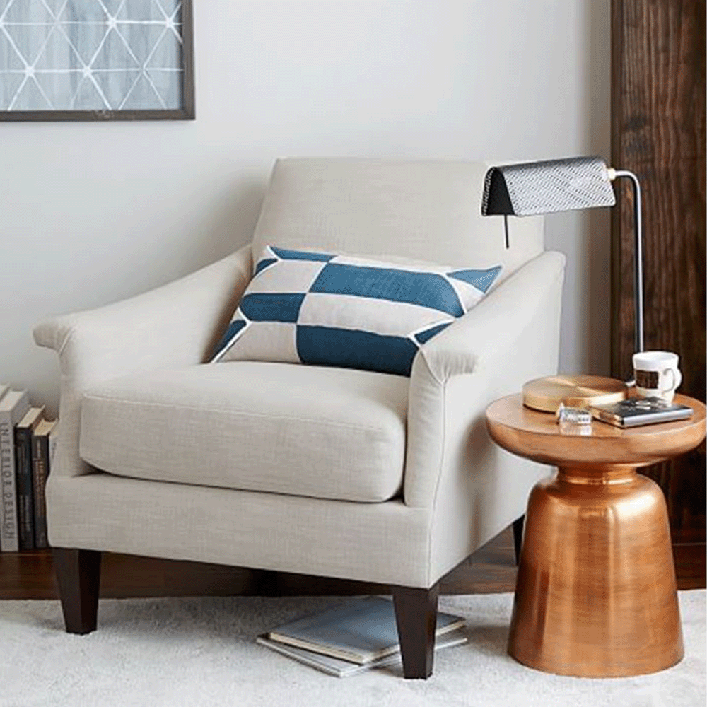 A curving shape dressed up with lustrous Bronze makes our Home Decorators Collection accent table more glamorous than most. The petite Ringer Side Table is a standout anywhere it's placed, at the end of a sofa or as a bedside table. It's an ideal companion piece for chic studio apartments and other small spaces.