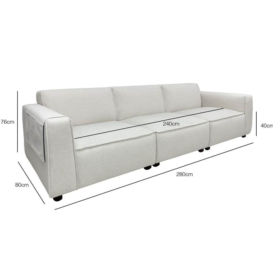 DIMENSIONS 4Seater: Sofa L 280 x D 80 x H 76 cm Seating L 240 x D 55 x H 40 cm