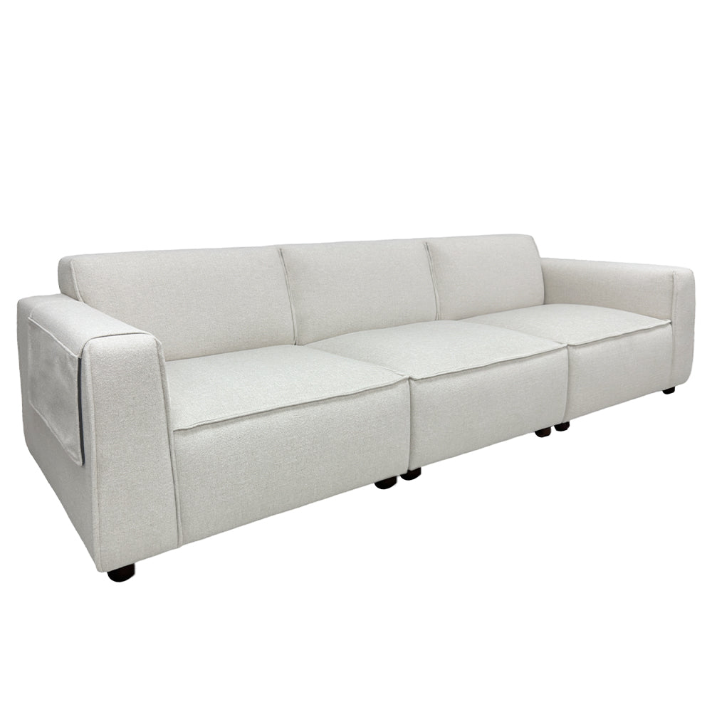 Clean, crisp, and ideal for lounging, the Bruno 4 Seater Modular Sofa is designed with an architect's precision, perfectly proportioned for both small and large living spaces. Its minimalist silhouette exudes a fresh, casual vibe, featuring A-profile arms with new piping details. The modular components enable you to rearrange the sofa to suit your evolving needs. Additionally, a small side pocket provides convenient storage for magazines or a remote control.