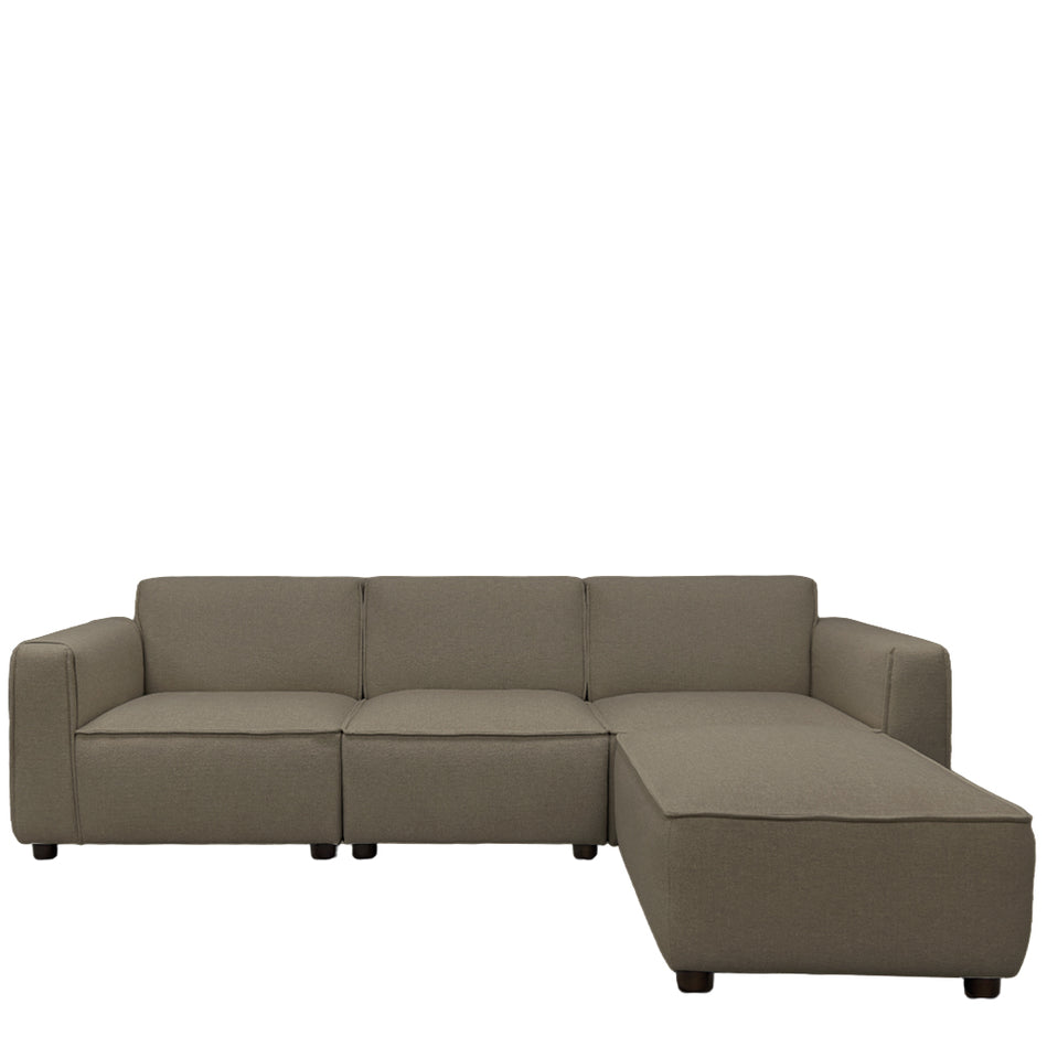 MATERIALS 100% Polyester Fabric Fixed Seat Cushion Sectional Sofa - Adjustable Seat Arrangement Walnut Stained Solid Wood Feet Kapor Wood Frame With High Quality Webbing High Density & Non-Sag Foam