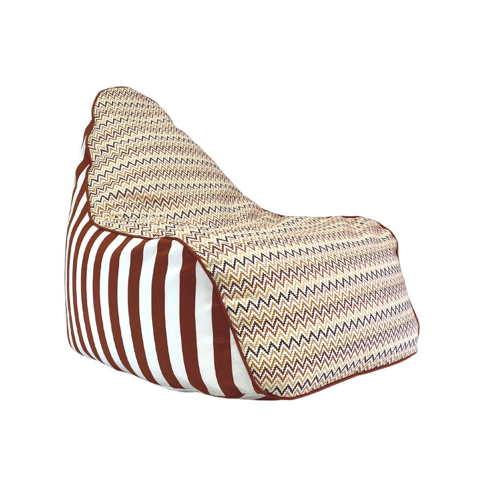 Coastal Designer Bean Bag's Duo-Toned fabric artfully transform a classic piece into an iconic one. The bean bag's curved outline redefines classics, blending artistry with functionality. UV-resistant and perfect for both indoor luxury and sheltered outdoor elegance.