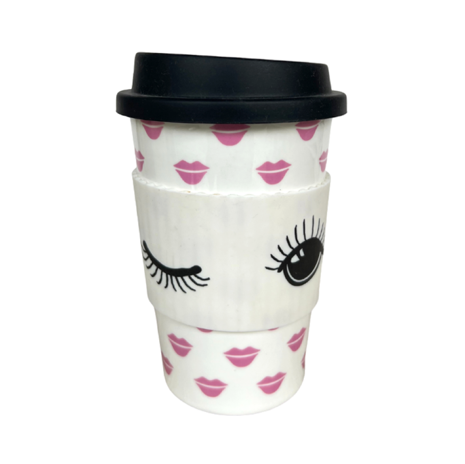 FEATURES Ceramic Travel Mug "Lips Pattern"