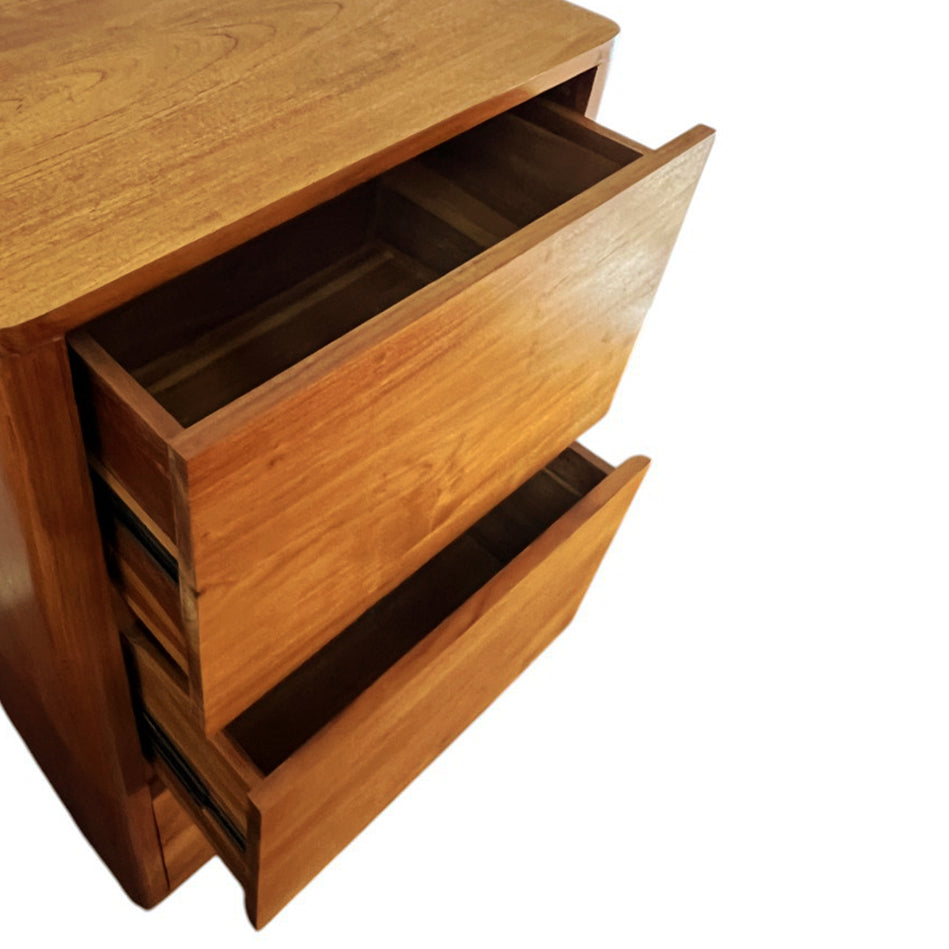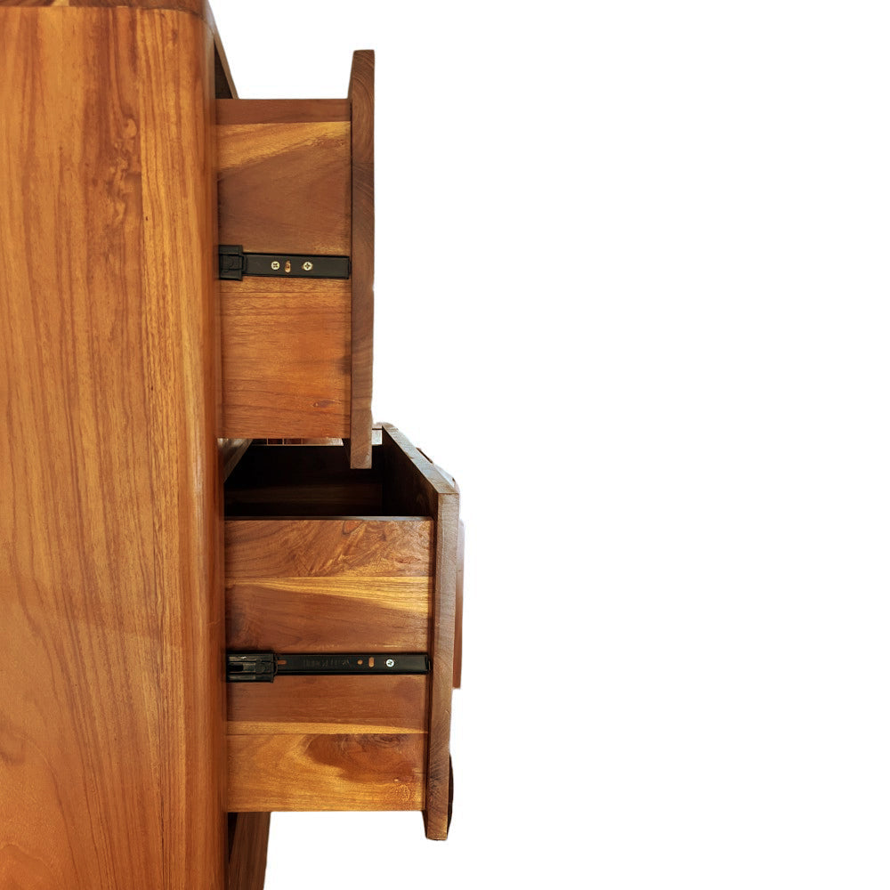 MATERIALS Solid Teak Wood Wood Lacquer Finish in Natural Tone Side-mount Drawer Slides for Smooth Pulling