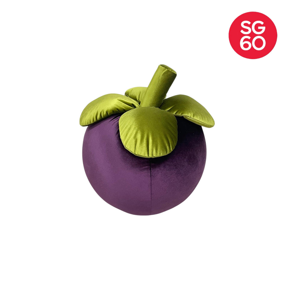 Channel tropical allure with the Danovel Mangosteen Pouf. Crafted in Singapore by skilled artisans, its plush purple velvet sphere and vibrant green leaf top echo the regal fruit. Use it as a footrest, side seat, or sculptural accent. This playful yet refined design brings a touch of nature-inspired character to any modern living space.