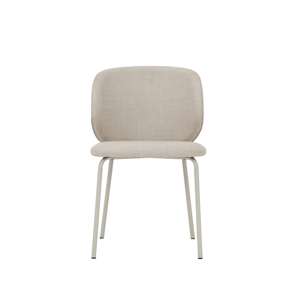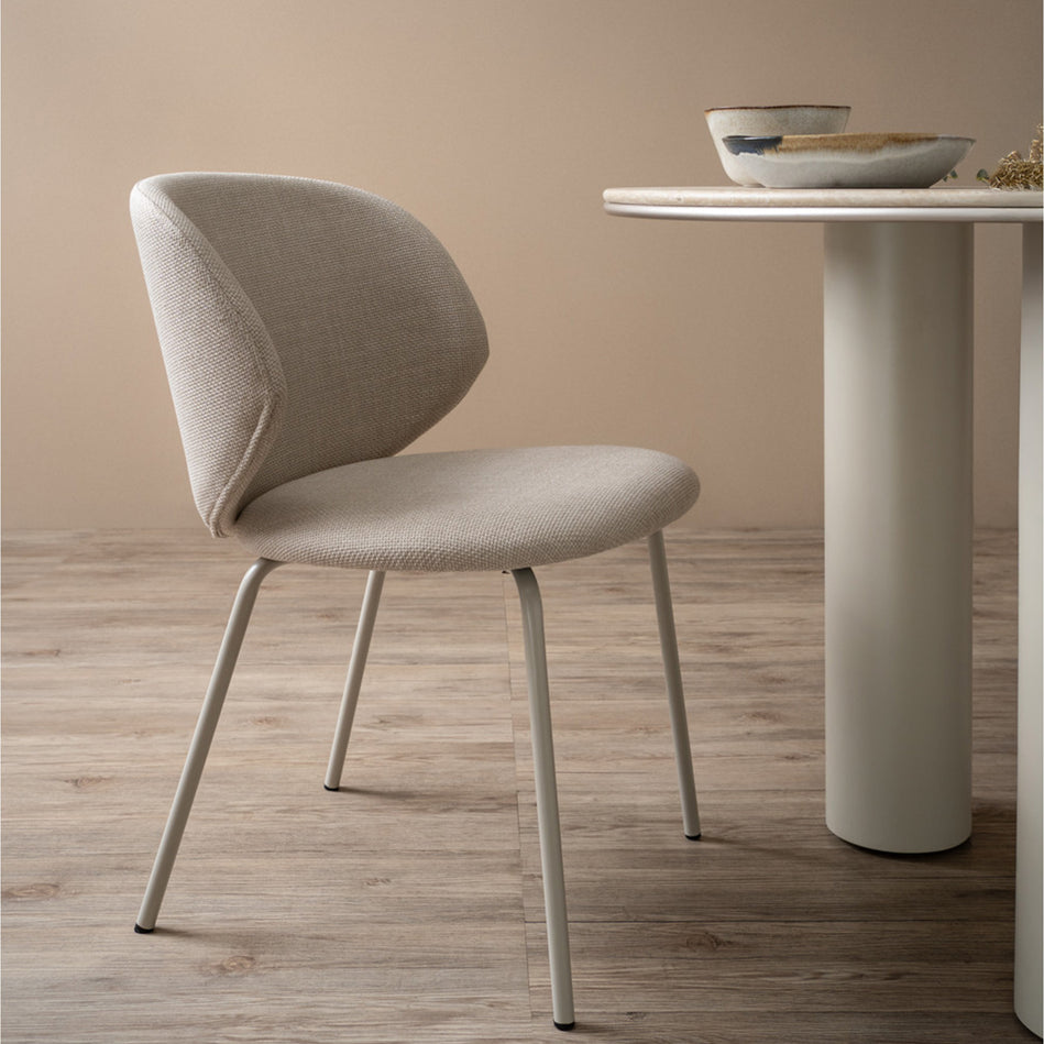 Sculptural yet subtle. Edith Full Backing Dining Chair blends curved form with airy lightness. Upholstered in a soft neutral fabric, its semi-backrest offers comfort with modern charm. A timeless accent for contemporary dining spaces..