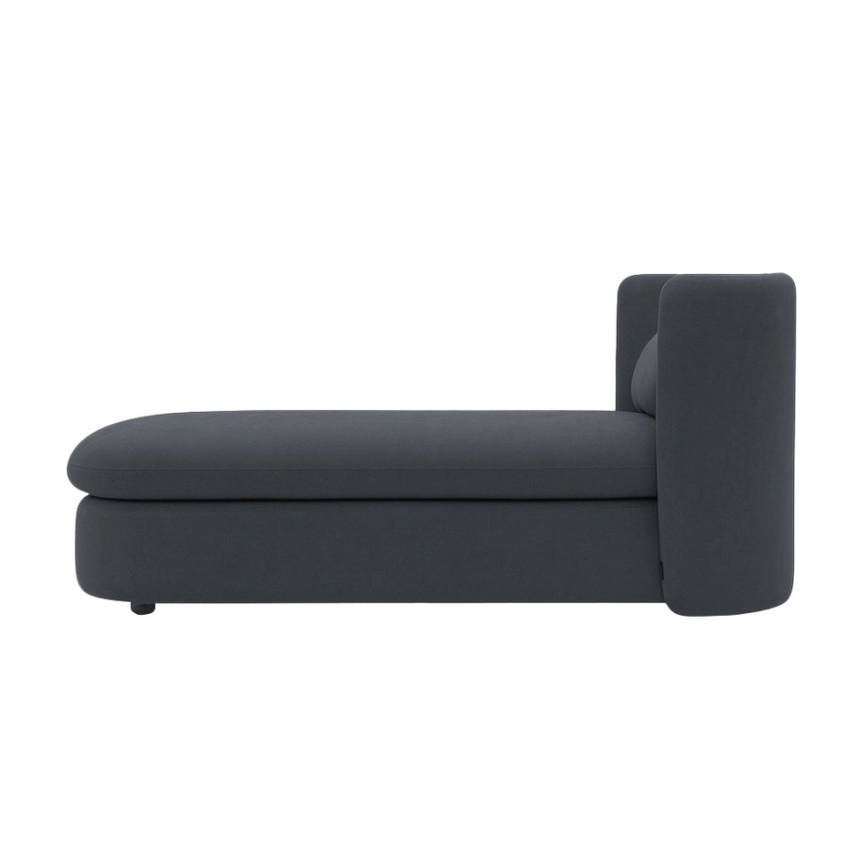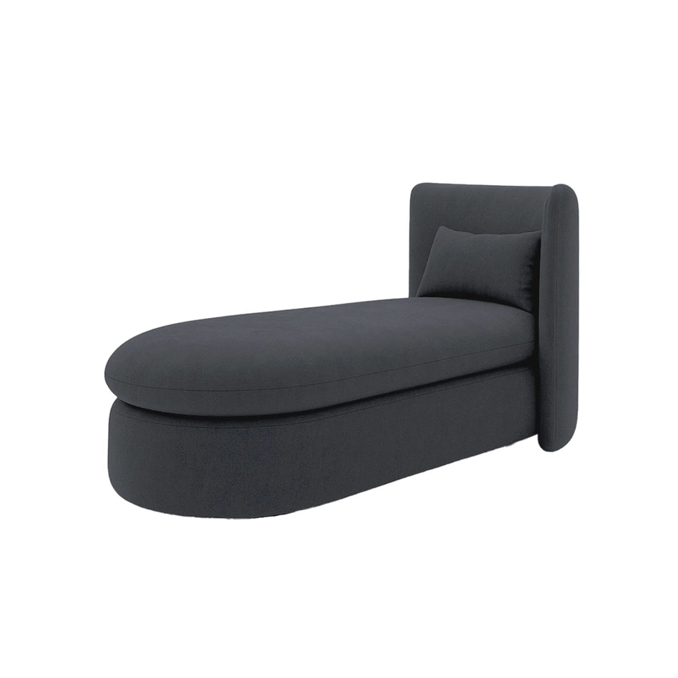 The Evita Chaise Sofa combines upright support with a restful design, featuring a stylish curved back. Its curved seating offers comfort and the luxurious materials add a touch of elegance to any living space.