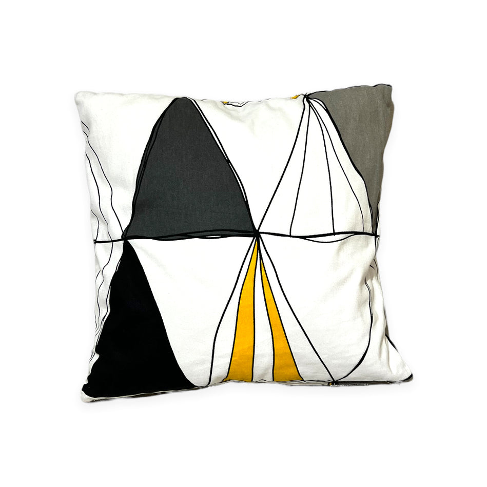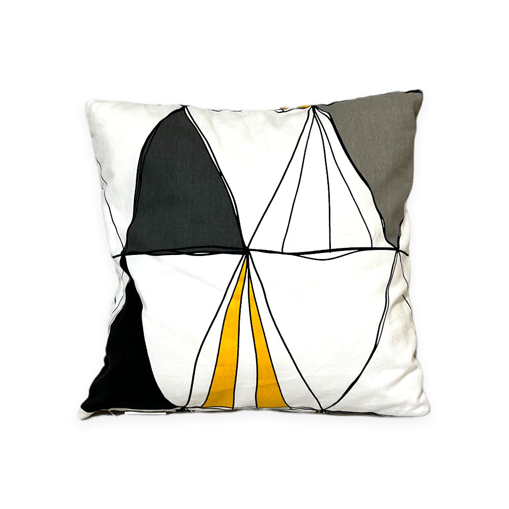 Geometric Sweden Printed Cotton Cushion - Yellow