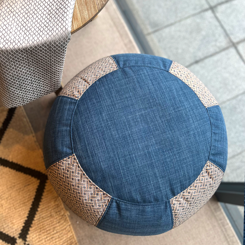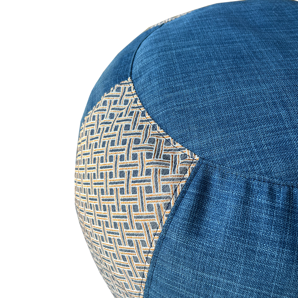 Zero-waste Glorious Rattan Bean Bag is inspired by the beautiful handmade Rattan. The pattern celebrates the period where beautiful things are passionately handmade slowly to perfection and its clever geometry looks glorious tufted with the hint of blue. This bean bag can act as additional stool or a coffee table by simply putting a tray on it. Style up your living space with Glorious Rattan Bean Bag, inspire your loved ones with this memorable gift that will create a lasting impression – a sustainable bean bag that is beautifully mix-matched in different colours of high quality fabrics.