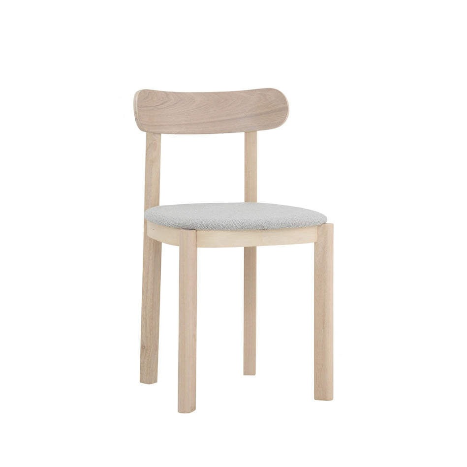 DINING CHAIR Dimensions L 44 x D 45.5 x H 76 cm SH 48 cm Materials Light natural oak Grey Fabric Cushioned Seat Solid Wood Seat Veneer Coating Bentwood Back Frame