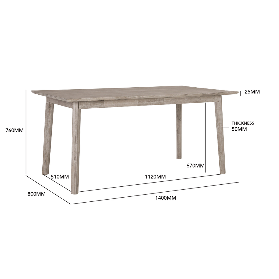 MATERIALS Navara Ash Colour Acacia Solid Wood Table Top & Leg Natural stain with multiple uneven distress finishing