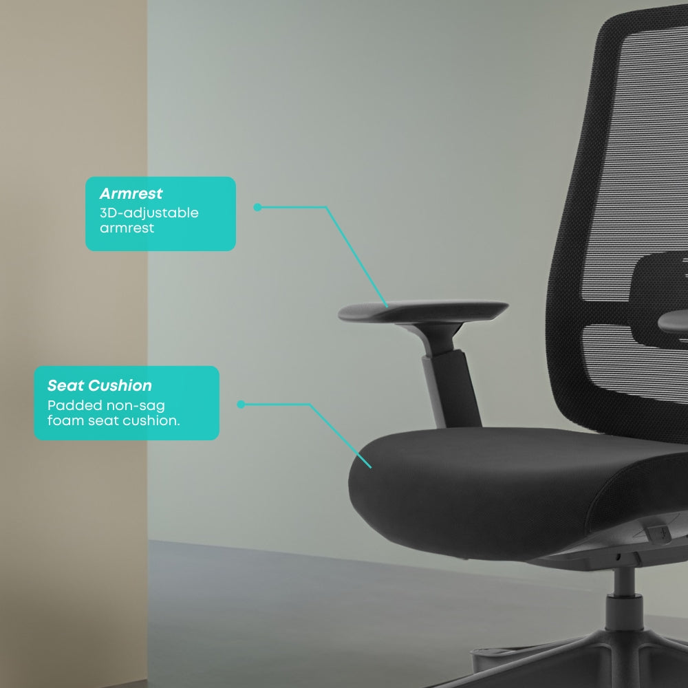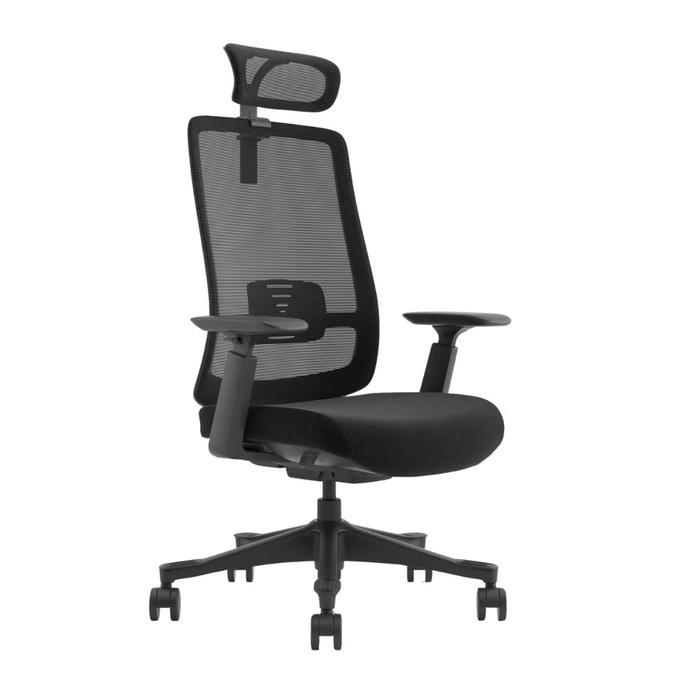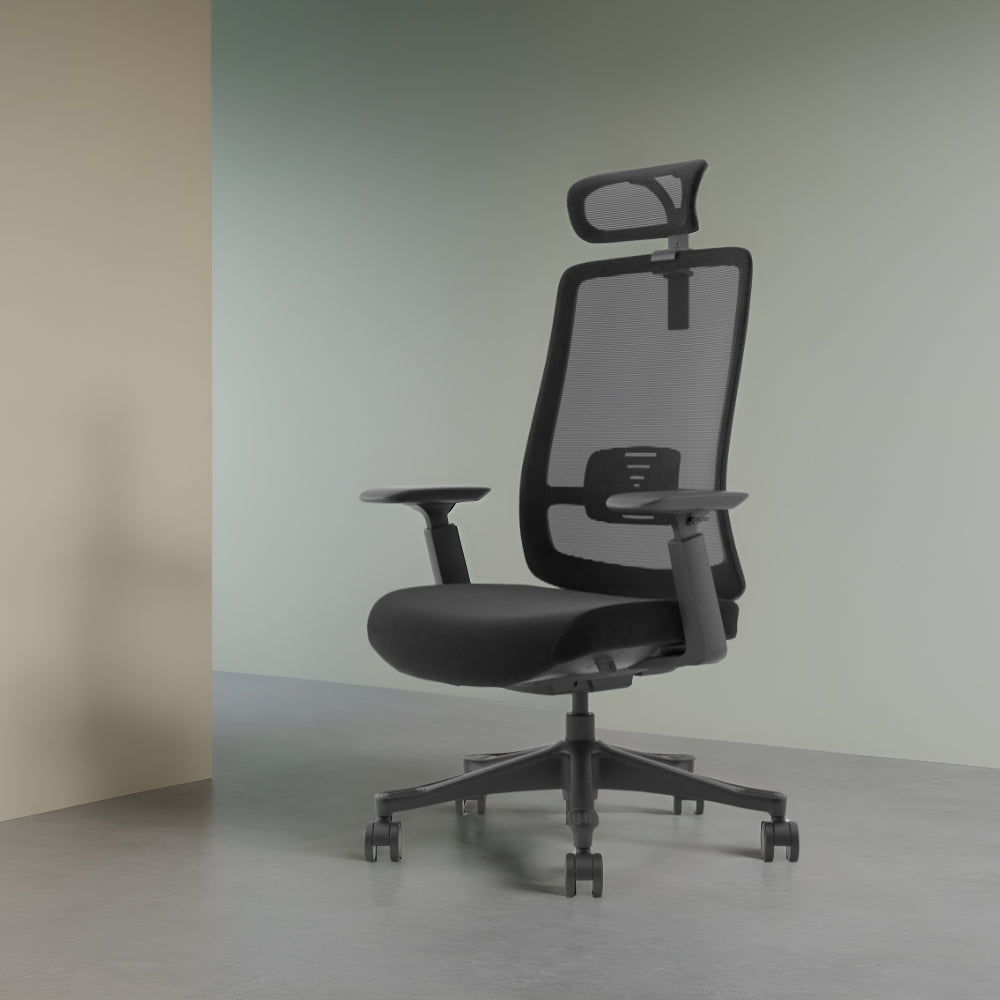 Axis Highback Office Chair is a modern ergonomic chair designed for all-day use. It features a breathable mesh backrest, adjustable armrests, and an adjustable headrest for optimal support.