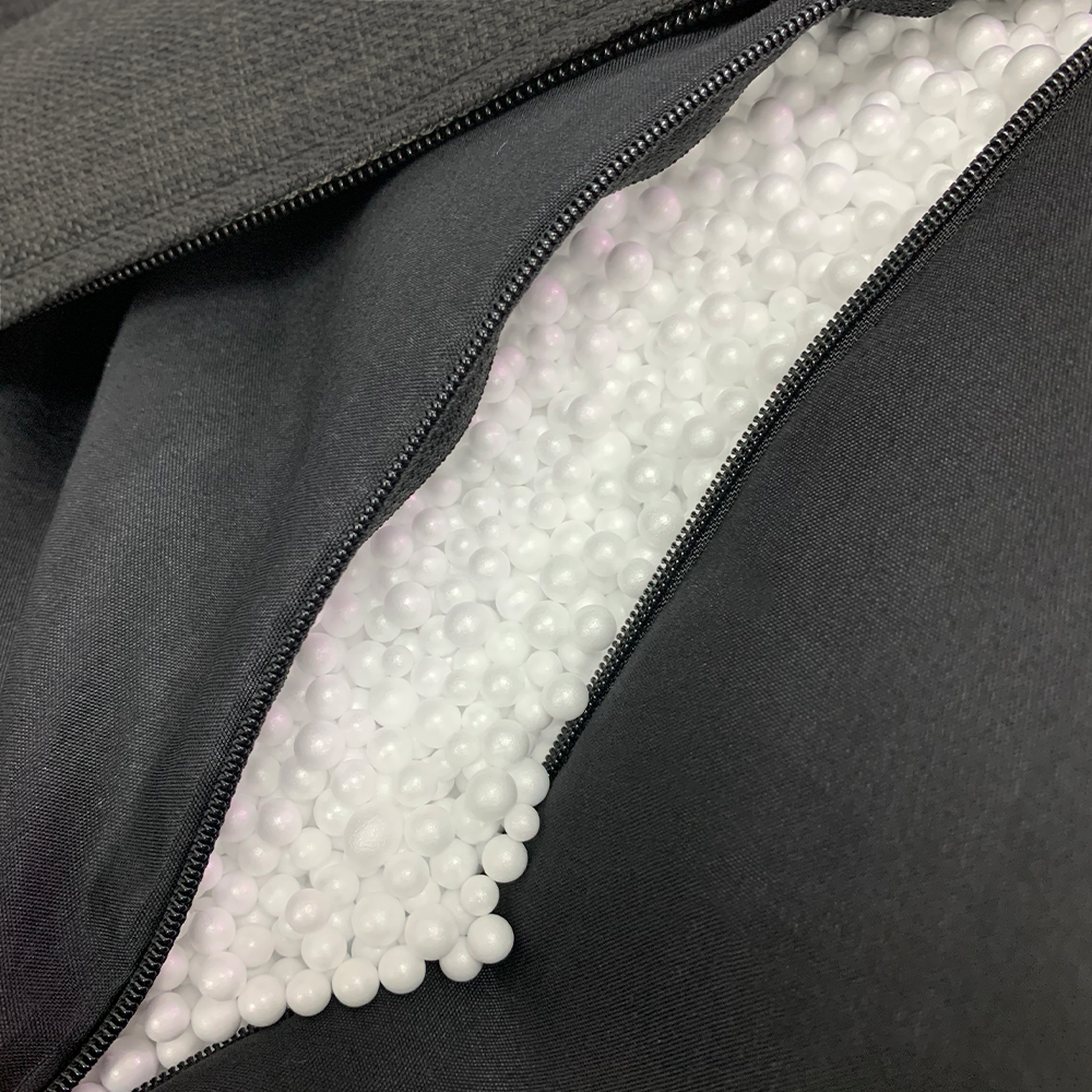 MATERIALS 100% Polyester Fabric Water Repellent Cover Removable & Washable Cover Quality Inner Lining With Zipper Quality EPS Bean Bag Beans, 3-5mm Dia.