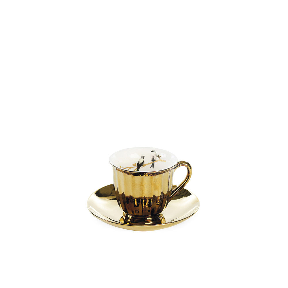FEATURES Ceramic Gold Teacup and Saucer Set 2 Birds