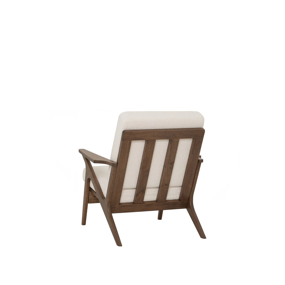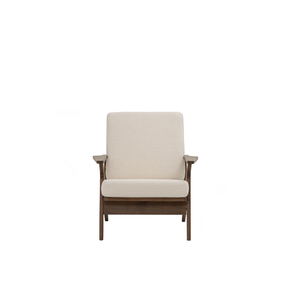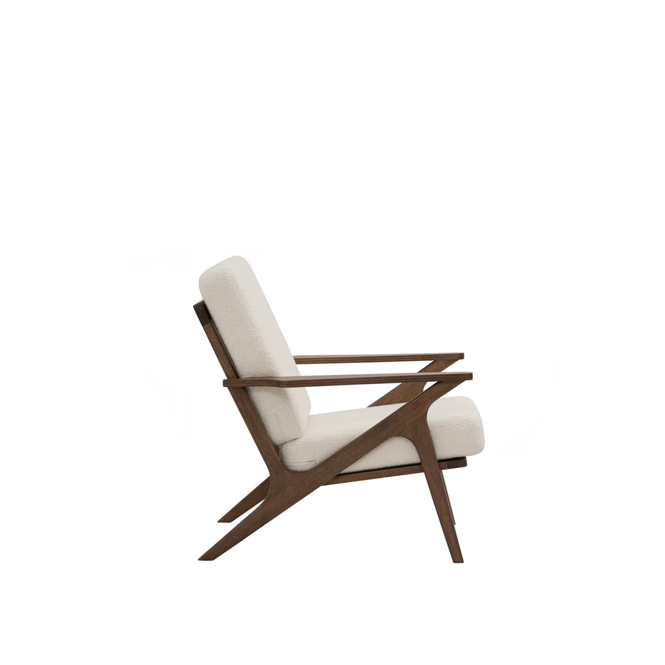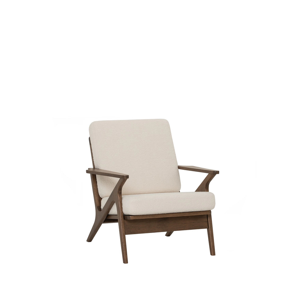 The Niko 1 Seater Sofa is a sculptural nod to mid-century style, featuring a bold Z-frame in rich walnut-stained wood. Upholstered in cozy ivory bouclé, it balances form and comfort effortlessly. A standout lounge chair for modern, Japandi, or minimalist interiors seeking warmth and quiet sophistication.