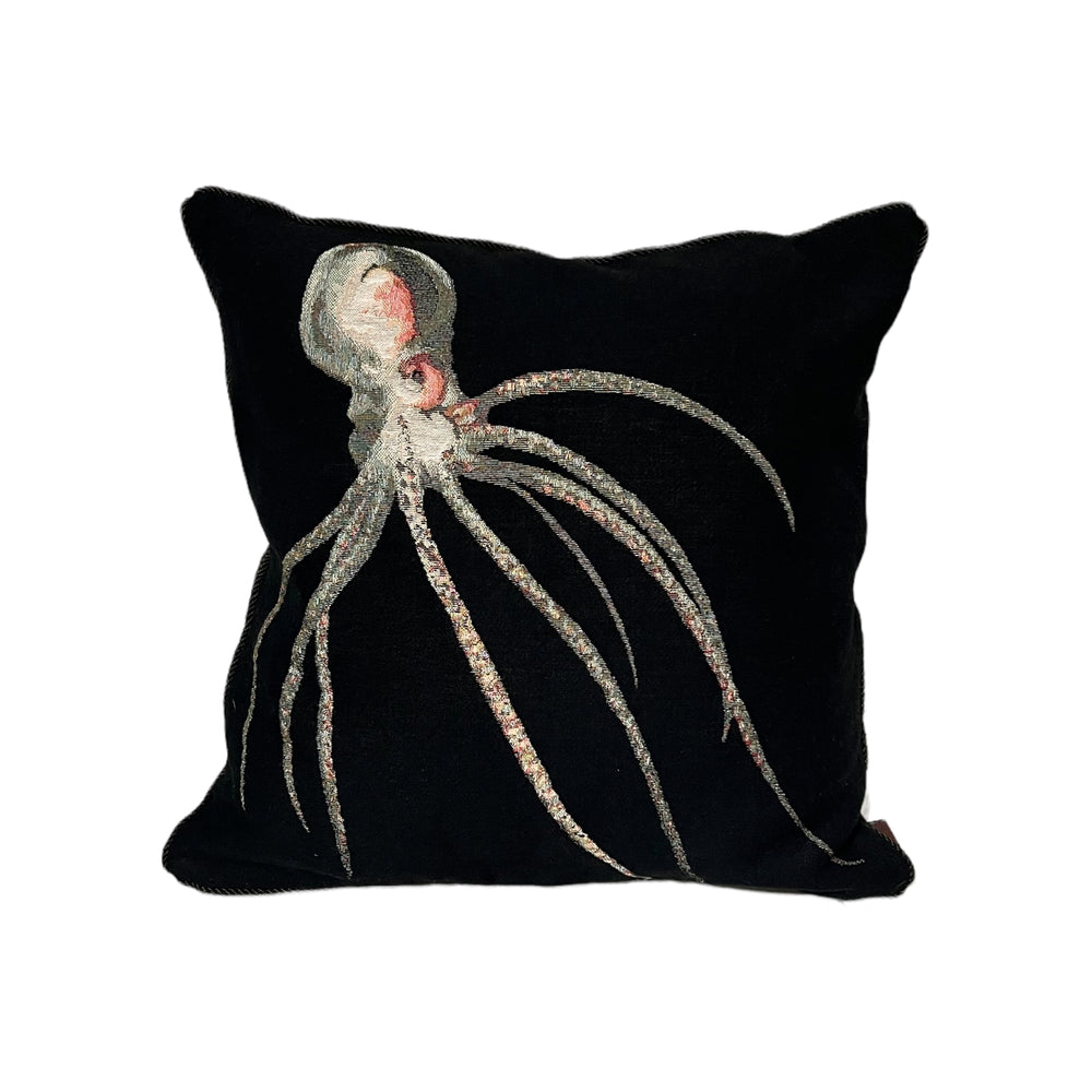 Traditional Tapestry Cushion from France by Art De Lys. Octopus. Black-ZE Elegance.