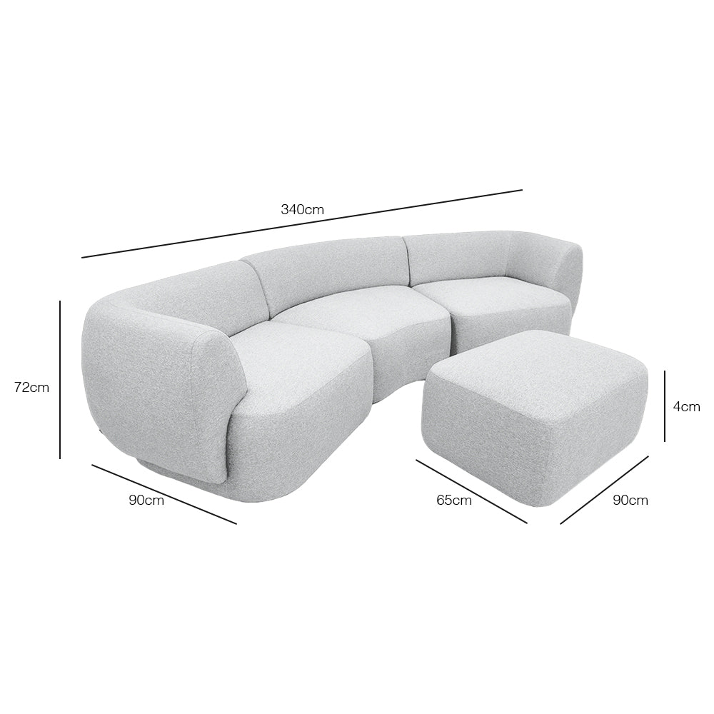 DIMENSIONS 4 Seater with Ottoman Sofa L 340 x D 90 x H 72 cm Seating L 134 x D65 x H 40 cm Ottoman L 90 x D65 x H 40 cm