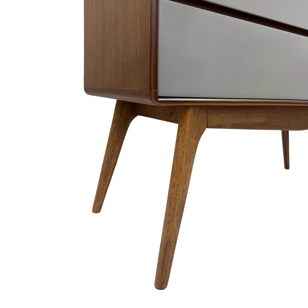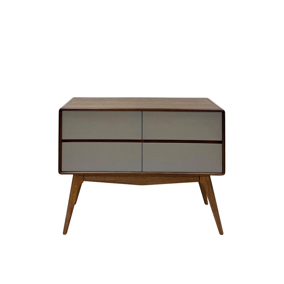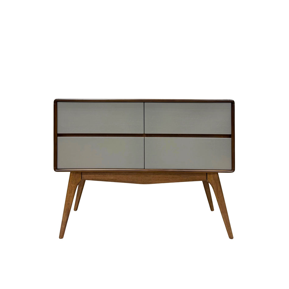 Sleek, sculptural, and smartly crafted, The PhilosConsole Table blends mid-century elegance with modern utility. Featuring four soft-close drawers in matte grey and a walnut-stained oak frame, it brings warm contrast and clean lines to any space. Ideal for entryways or living rooms. A timeless storage statement.