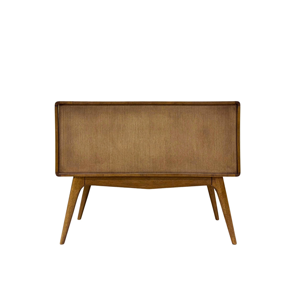MATERIALS Leg made out of Malaysian Oak Cabinet body made out of MDF and Walnut Veneer. Chamfer edged handle.