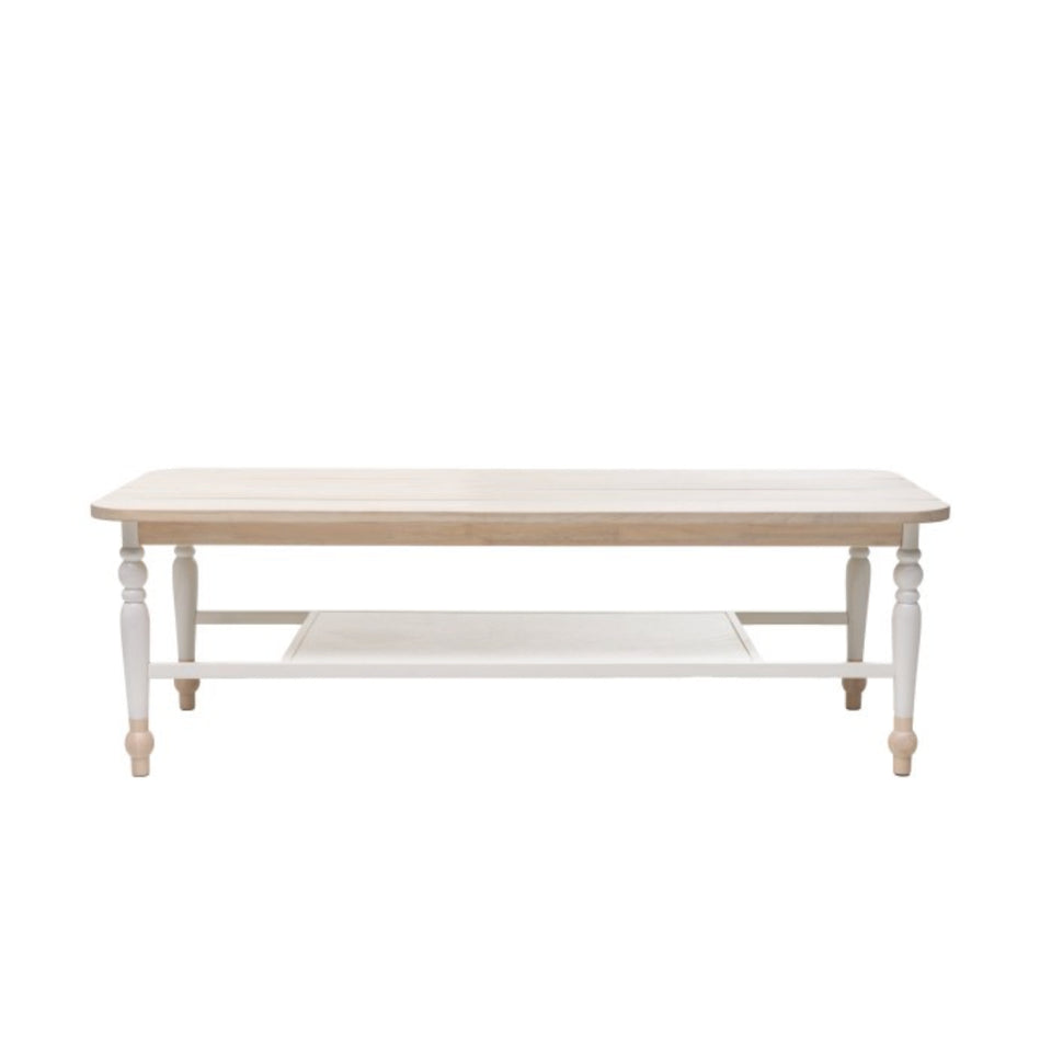 FEATURES Wooden Crafted Plank Coffee Table White Modern Finish Elegant White And Natural Wood Finish