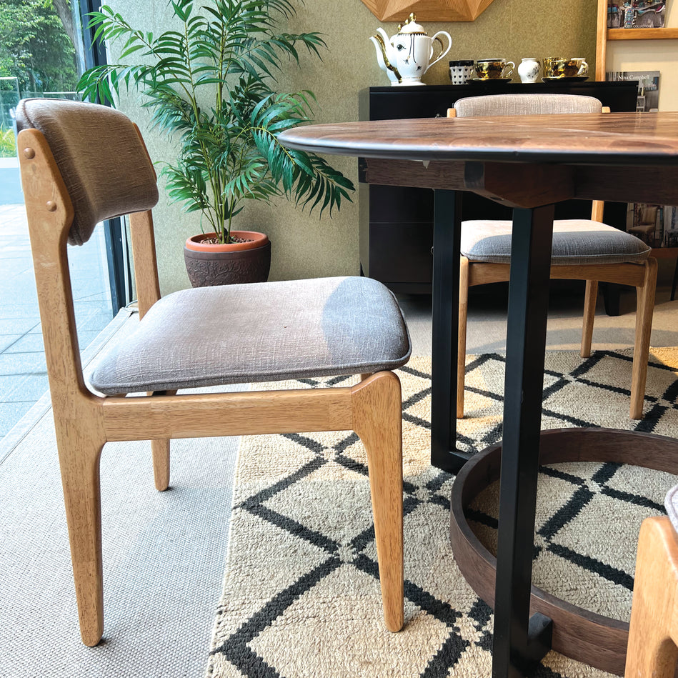 Elevate the aesthetic of your dining area with this collection ofPhilos Retro Dining Chair (Light Grey). It has provides a comfortable seat for your lounging pleasure. Soft padded seat and back upholstered in high quality fabric to keep you comfortable.