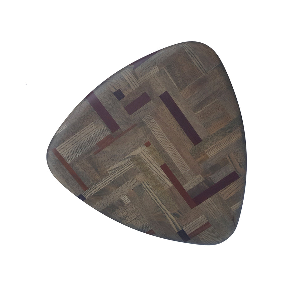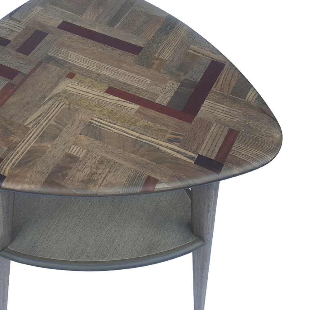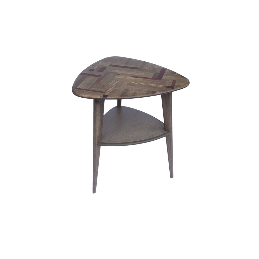 FEATURES MixWood Crafted Side Table Box Pattern at the Table top A traditional and elegant Triangular shape Rounded Legs and Corners give this a casual contemporary look Perfect for displaying favorite accents or to be used as a trendy open concept storage unit