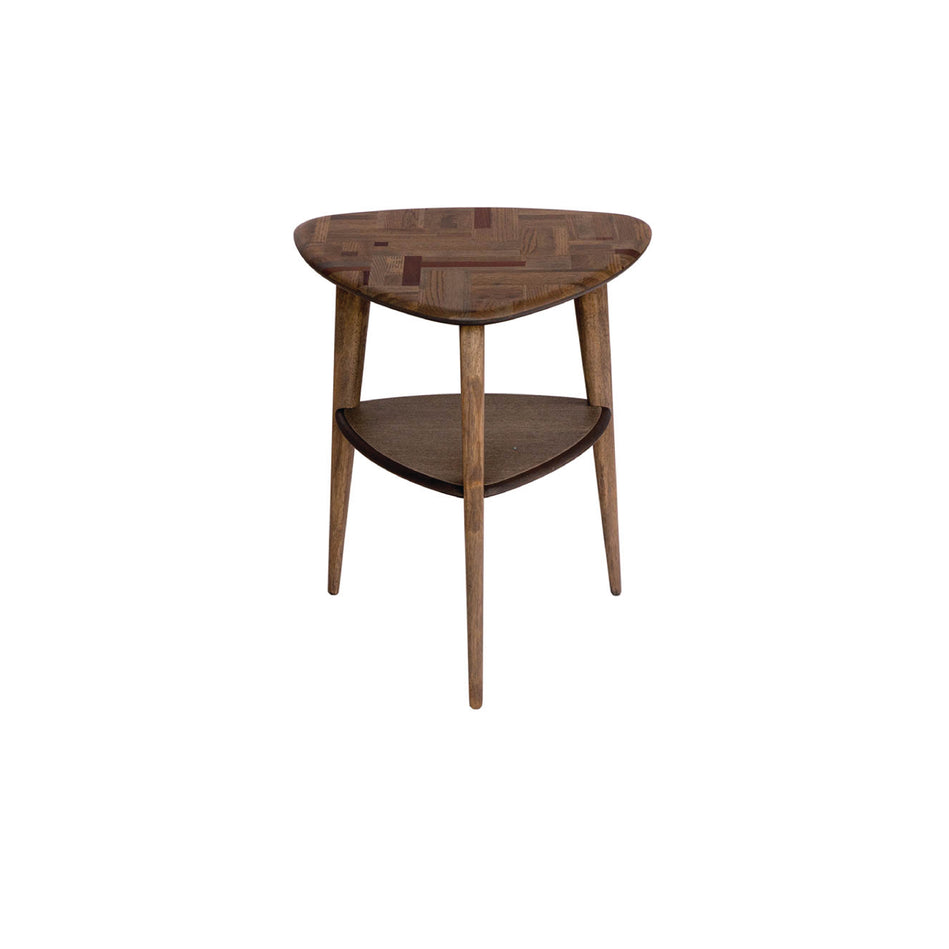 FEATURES Walnut Wash Pattern Color at the Top Soft Edge Triangular Shaped Side Table Stable and Sturdy Structure Crafted From Dark Walnut