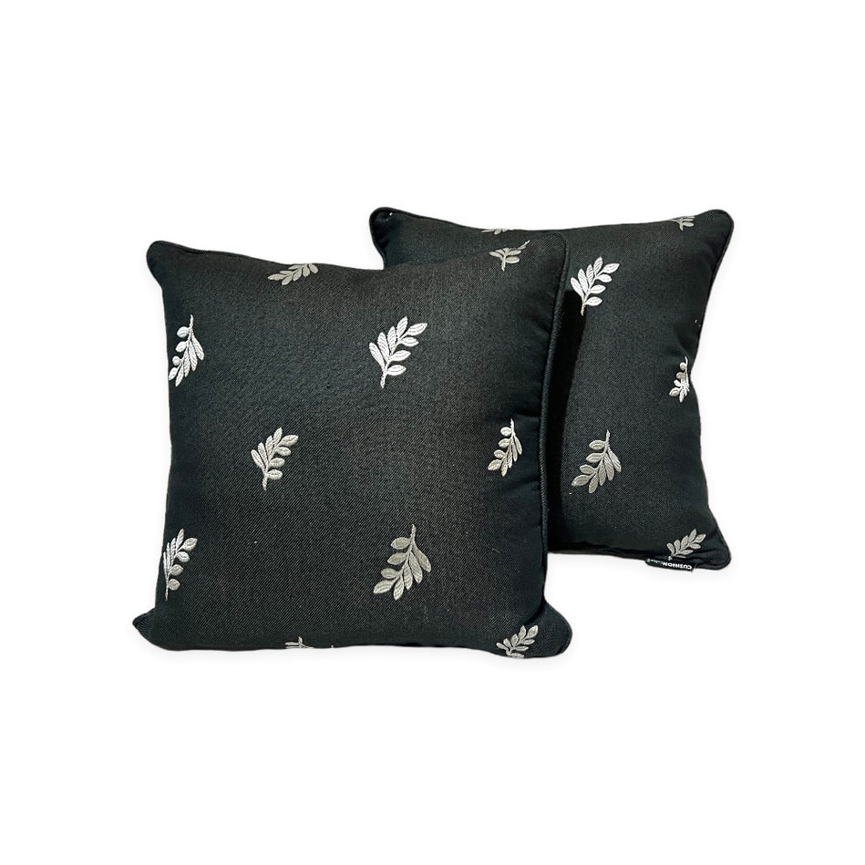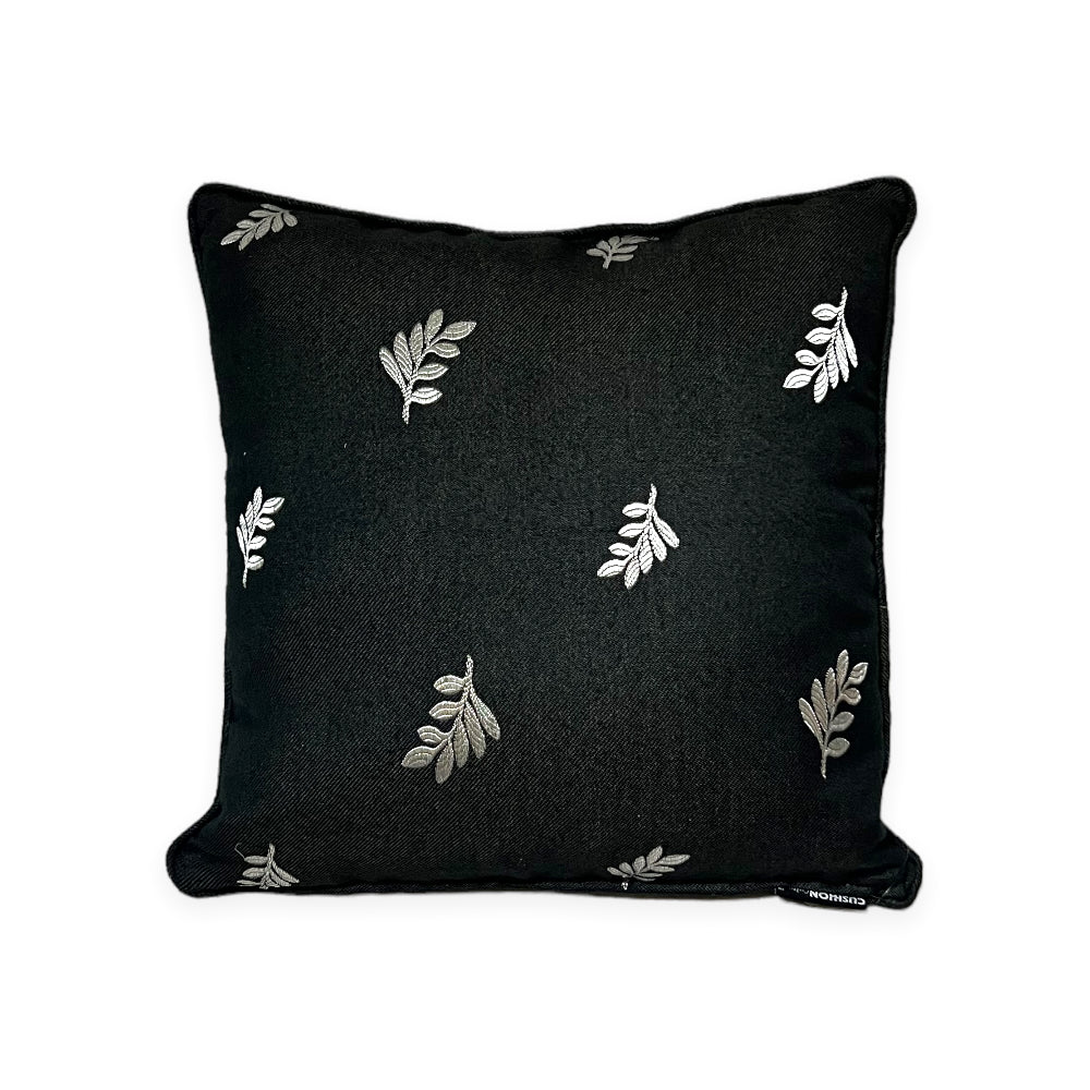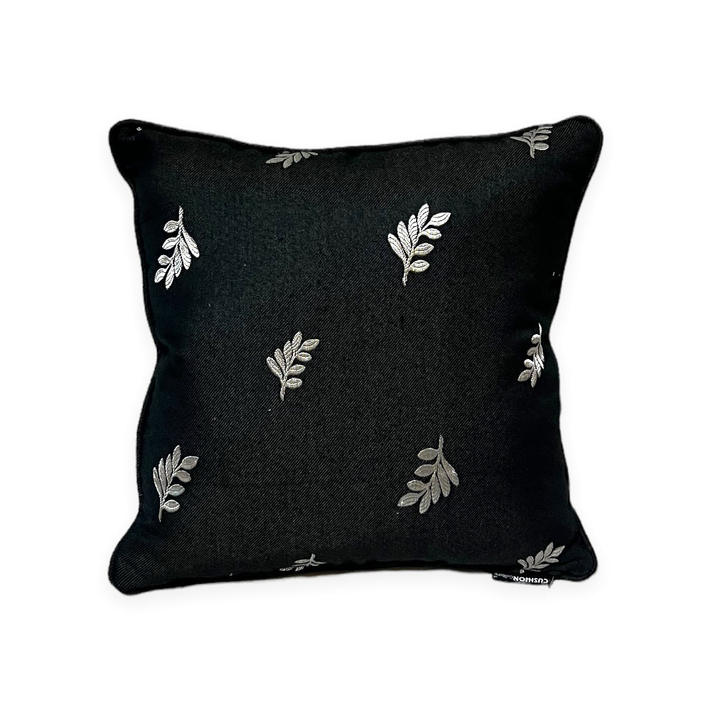 Silver Leaf Black Cushion