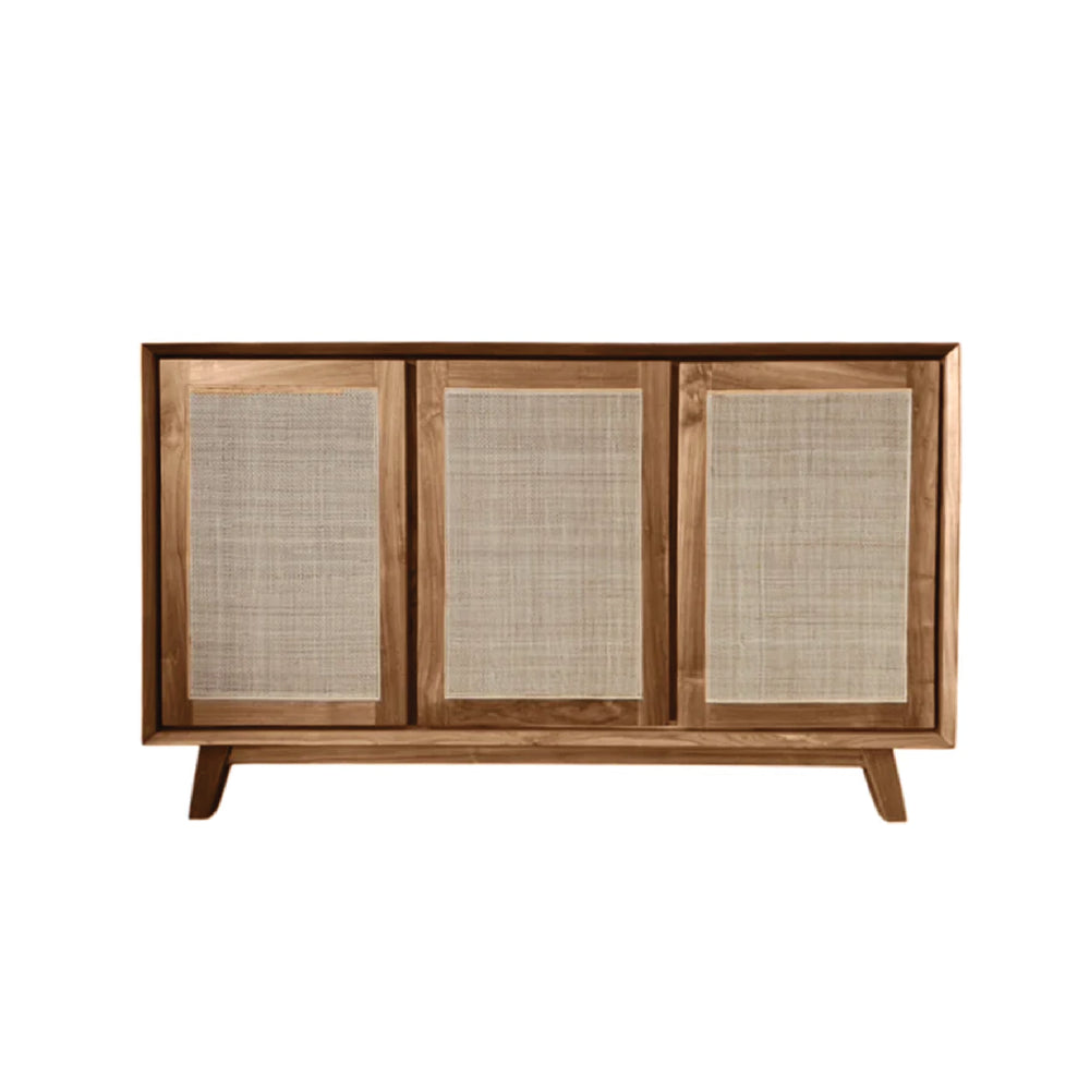 Tural Rattan Sideboard is a minimalist masterpiece, blending the warmth of solid teak with the airy elegance of handwoven rattan. Its clean lines, balanced proportions, and natural textures make it an ideal choice for those seeking style without sacrificing function.