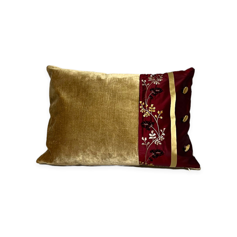Specially Designed and matched gold velvet, faux silk embroidery cushion,