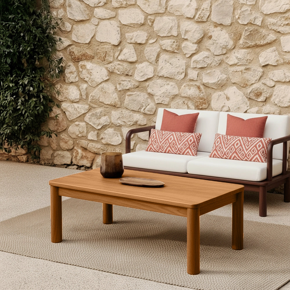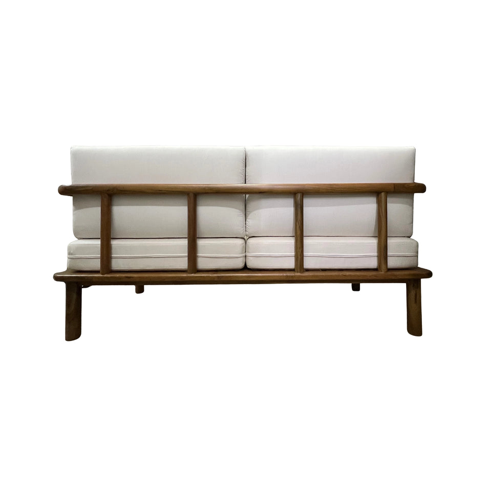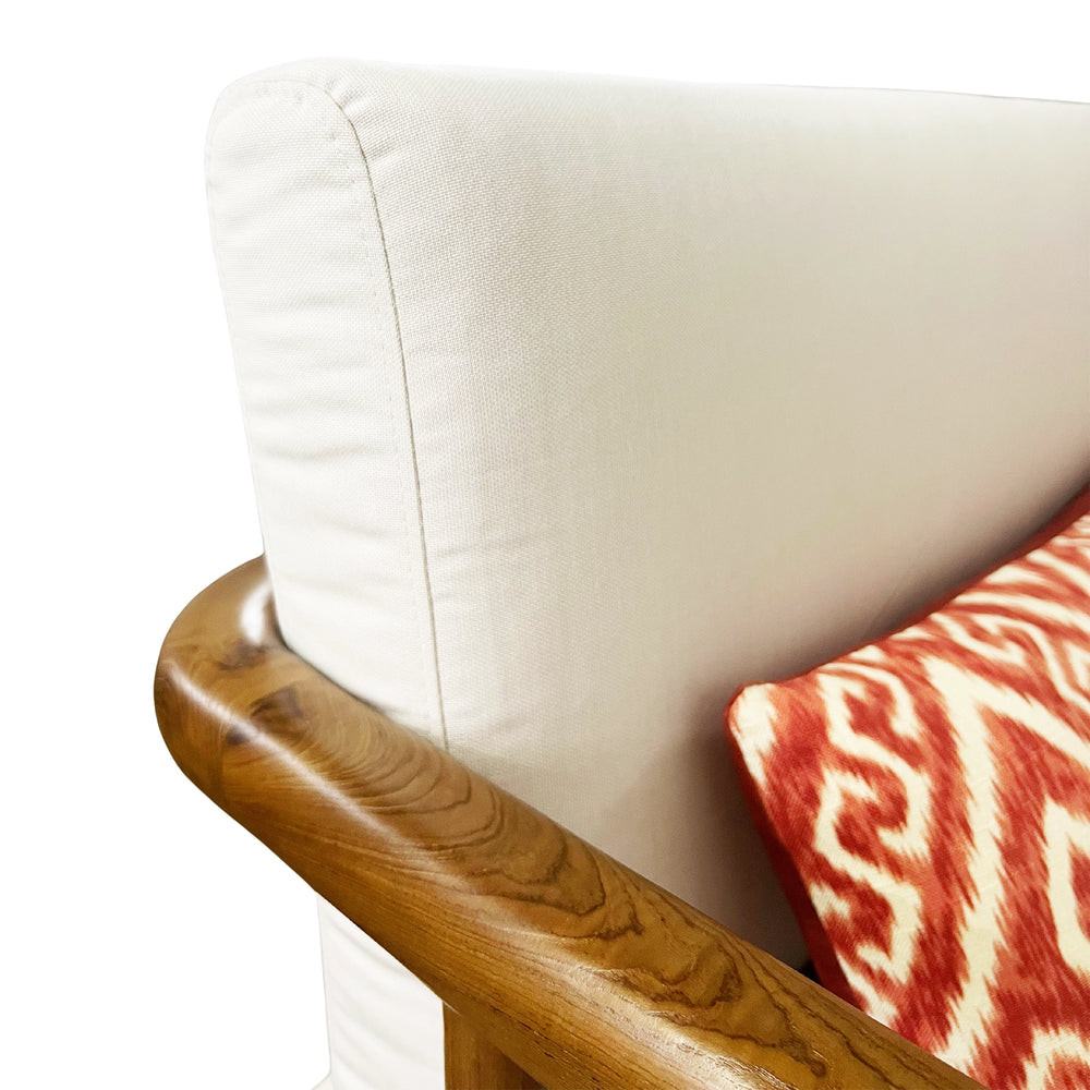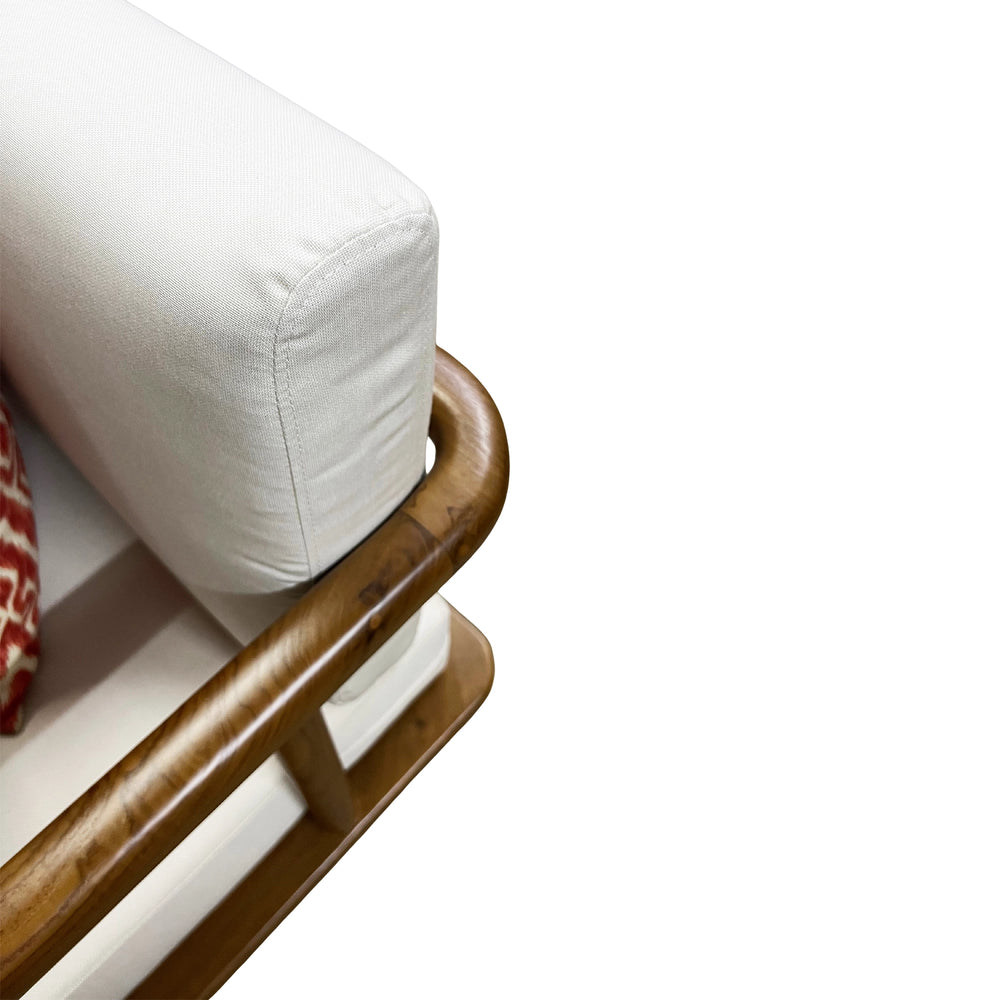 Crafted from solid teak wood, Westin 2-Seater Sofa blends sculptural form with lasting outdoor durability. Its rounded frame and clean lines exude a modern warmth, while plush ivory cushions and rust-toned pillows add bold contrast. A refined yet relaxed piece, perfect for patios, verandas, or indoor-outdoor living.