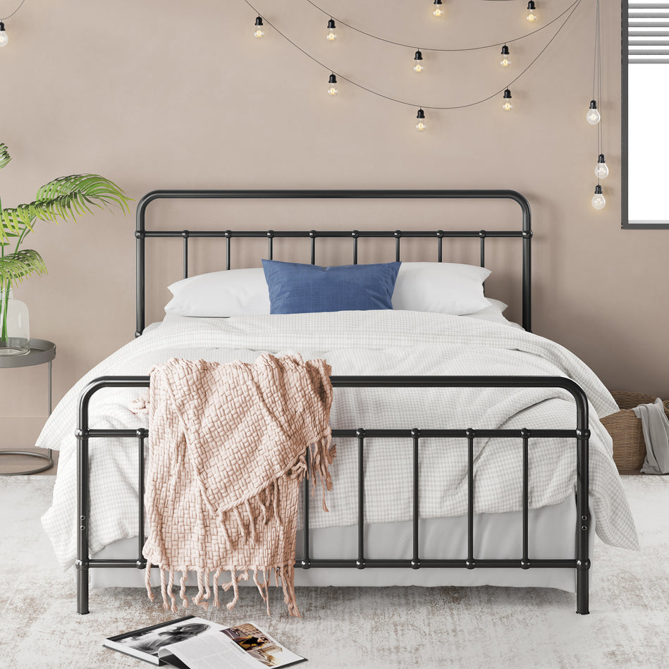 Reinforced Center Beam - The Bed Frame features a reinforced centre beam for even support, and durable metal slats spaced at the optimal width to prevent sagging, motion-free sleep and increased mattress life.